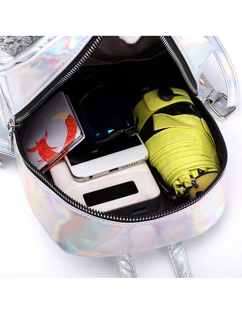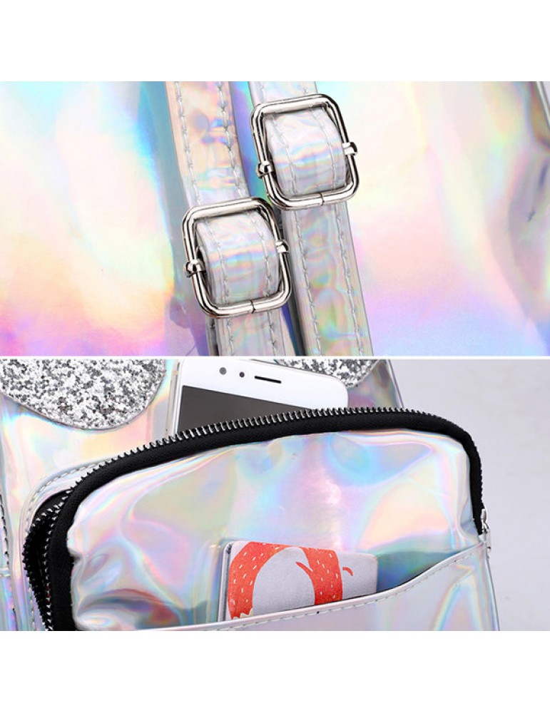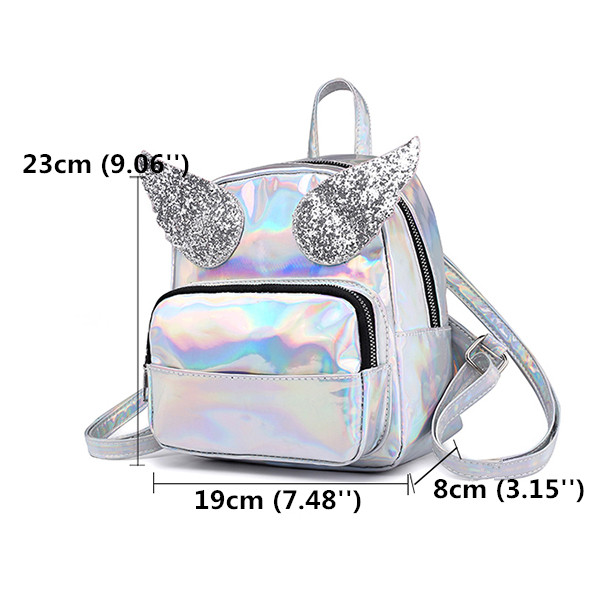 Women Laser Shoulder Bag Sequin Wings Backpack Cute Reflective Bag