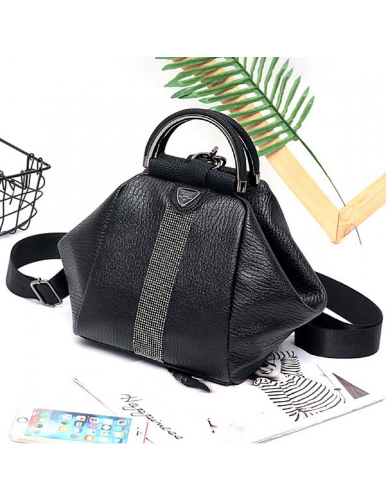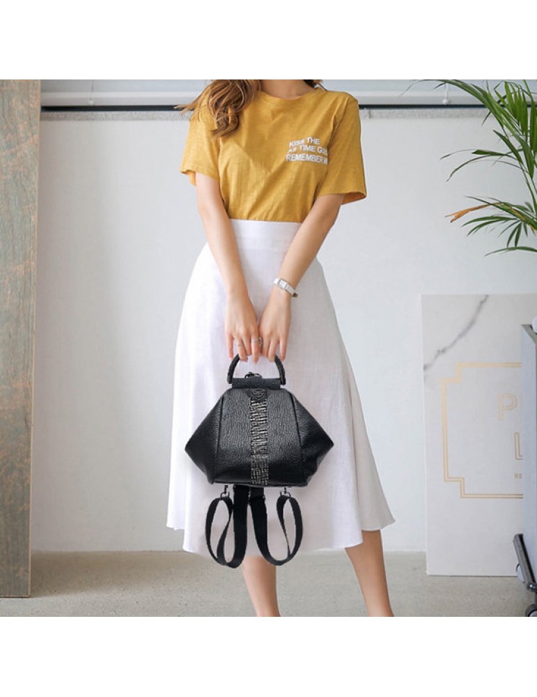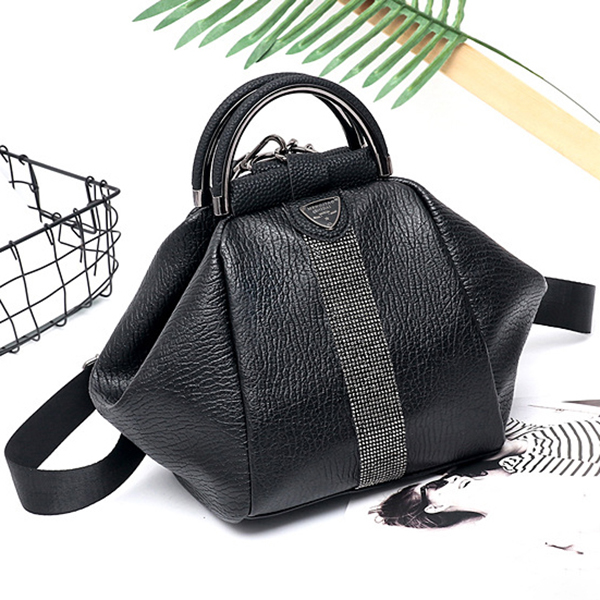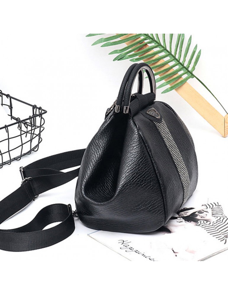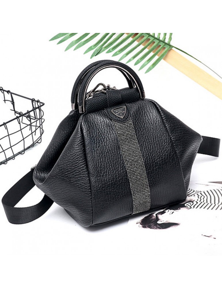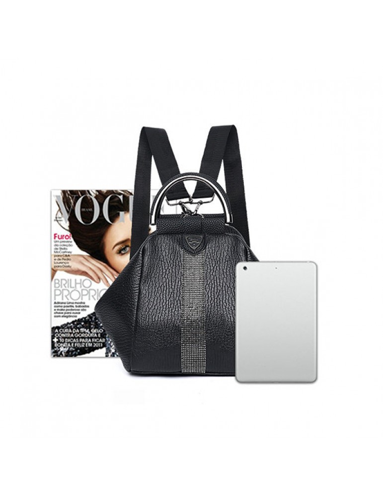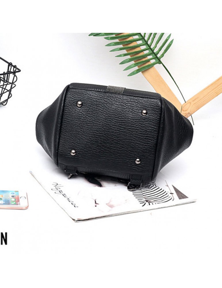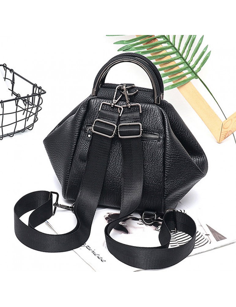 Women Faux Leather Black Multifunctional Shoulder Bag Backpack Handbag