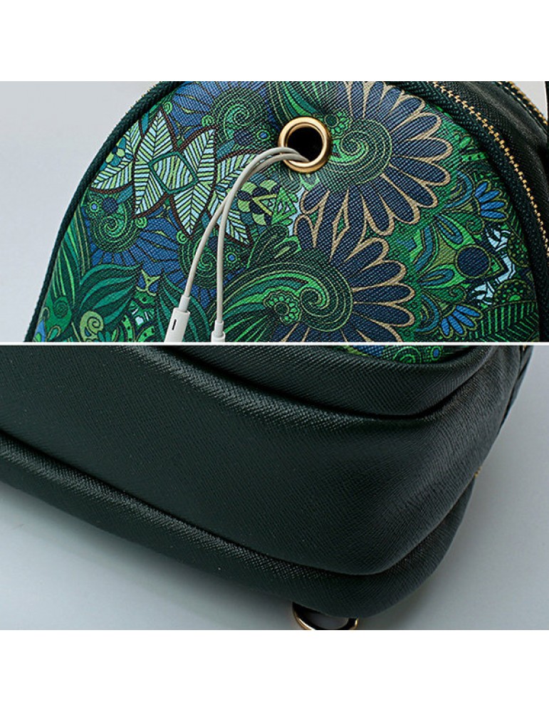 Women Forest Print Bohemian Multi-function Backpack Travel Crossbody Bags