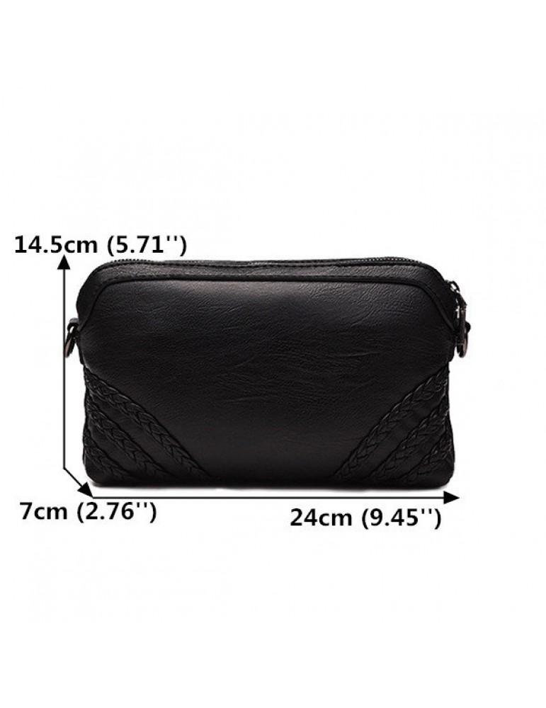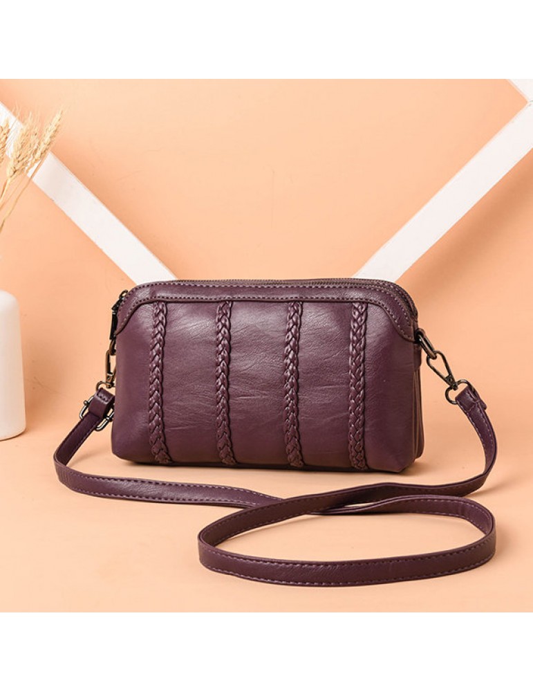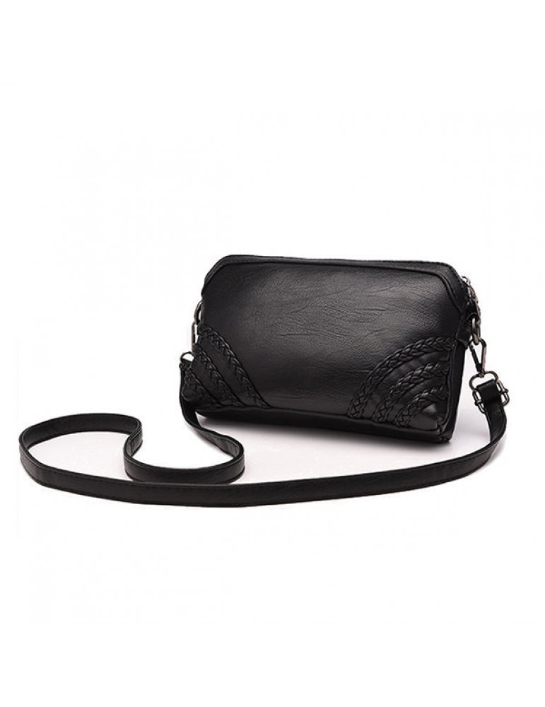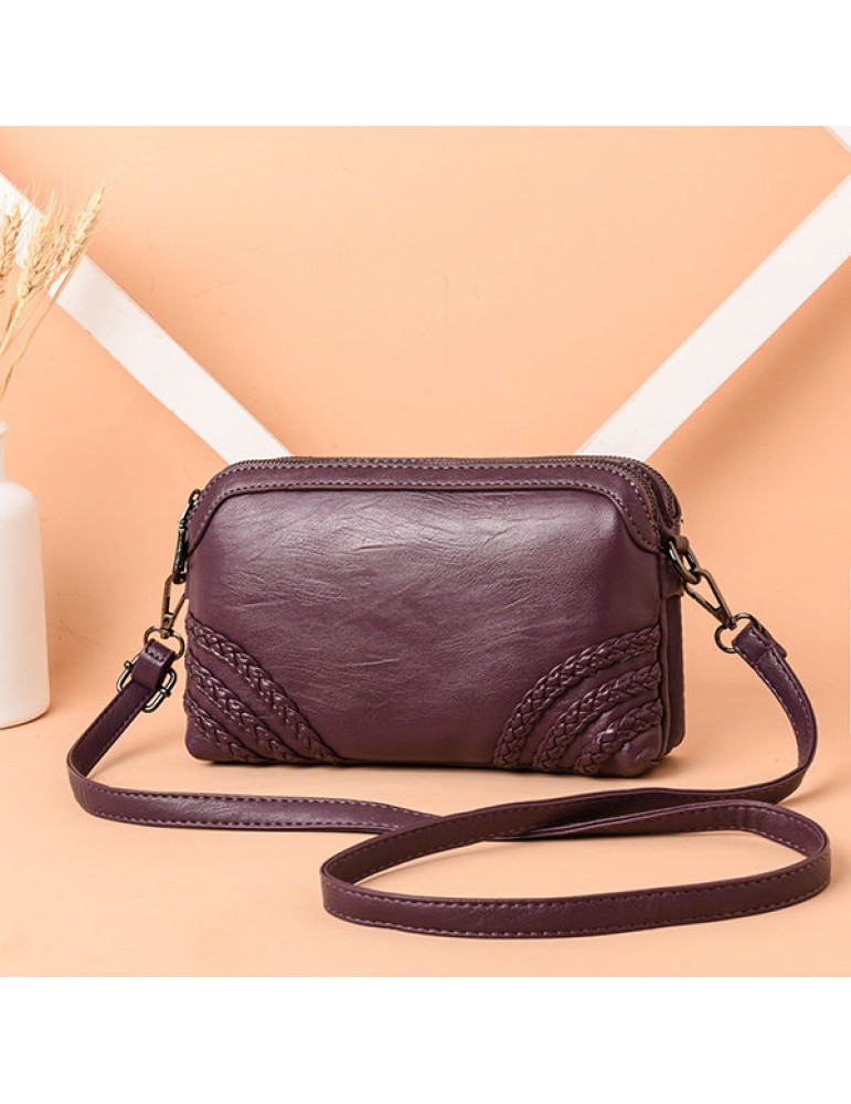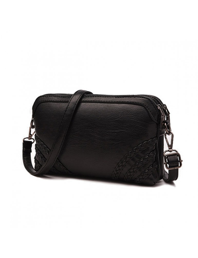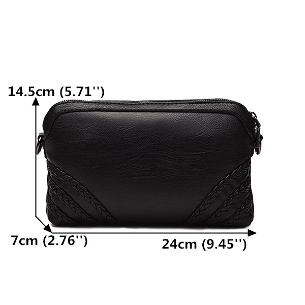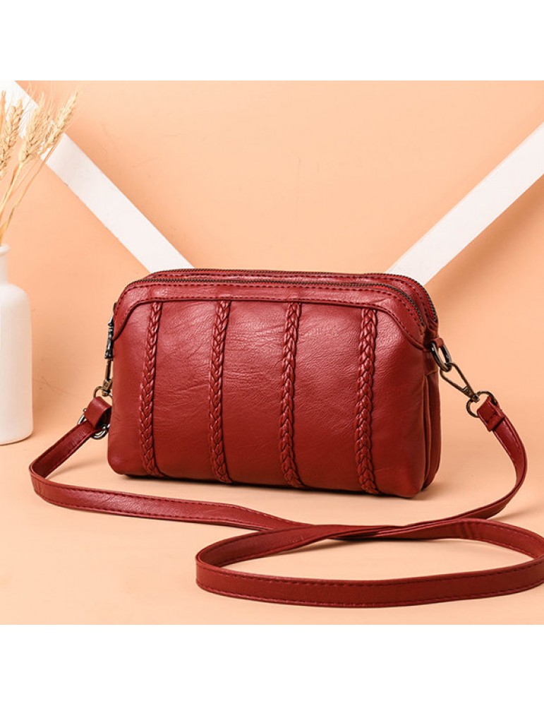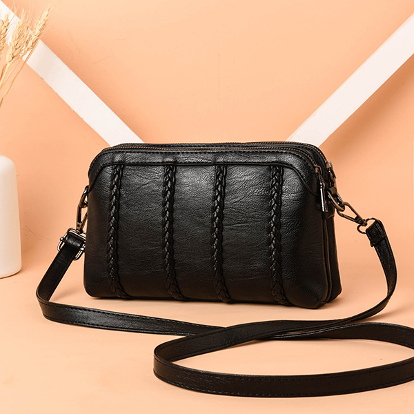 Women Vintage Soft PU Leather Crossbody Bag Solid Double Layer Shoulder Bag