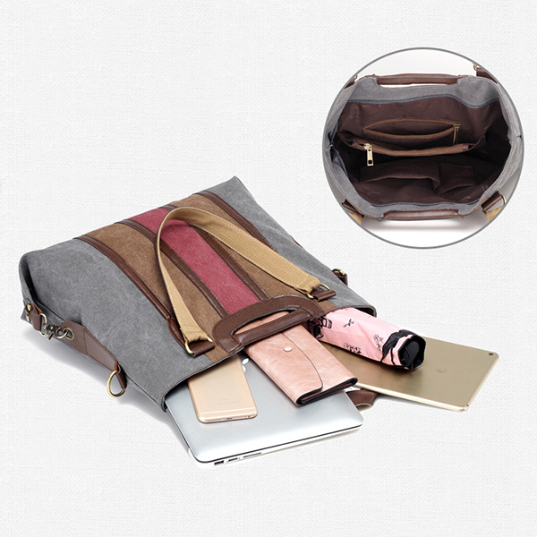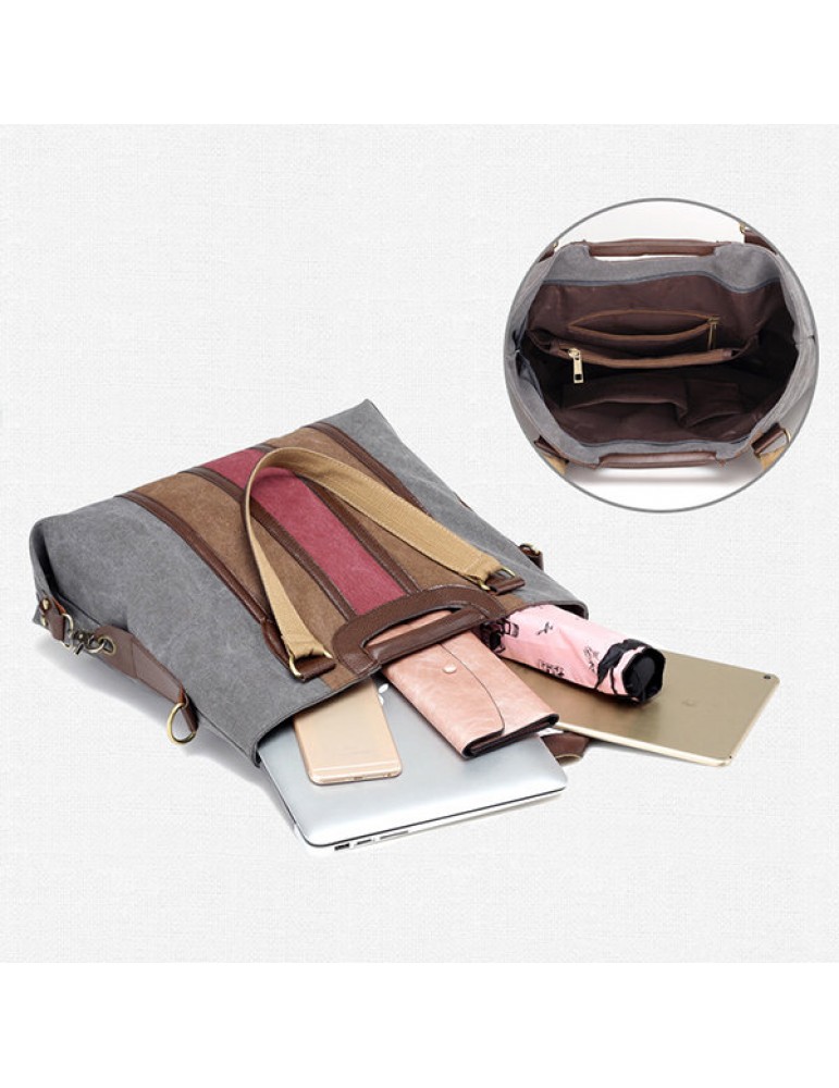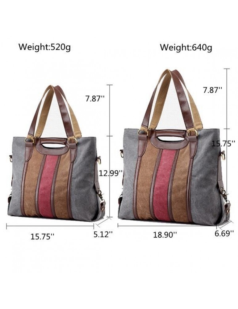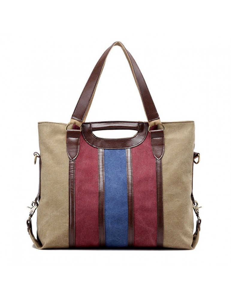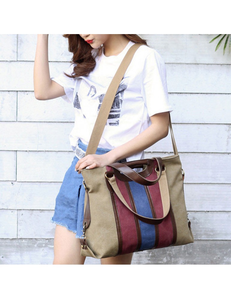 Women Canvas Rainbow Stripe Handbag Outdoor Casual Tote Bag Picnic Bag Crossbody Bag