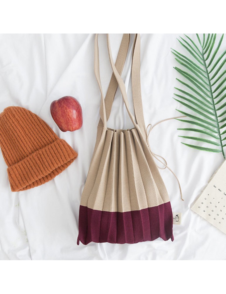 Women Organ Fold Handbag Patchwork Knitting Shoulder Bag