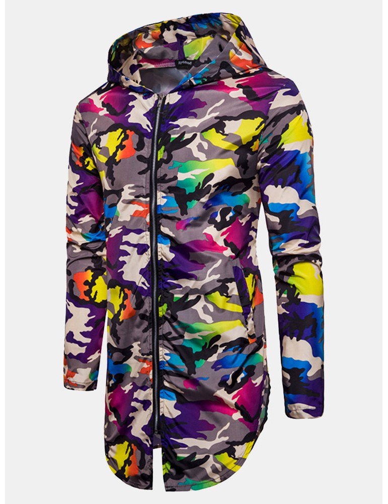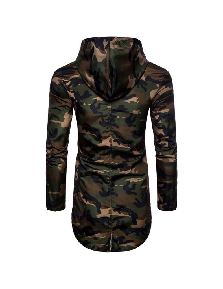 Outdoor Sunscreen Thin Mid Long Camouflage Printing Hooded Jacket for Men