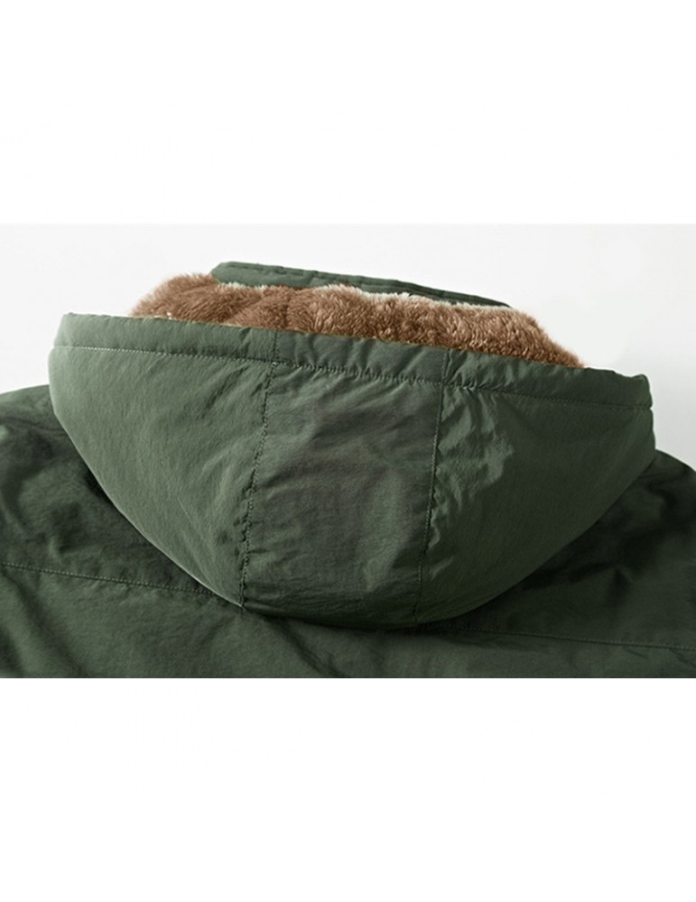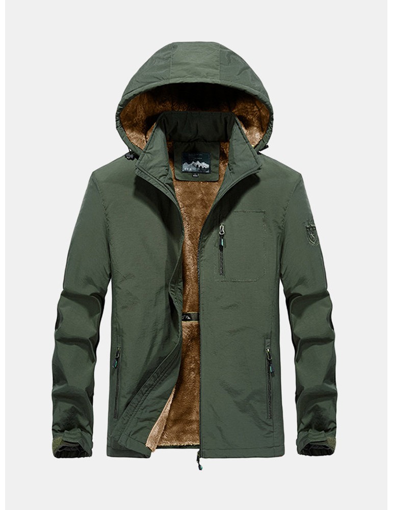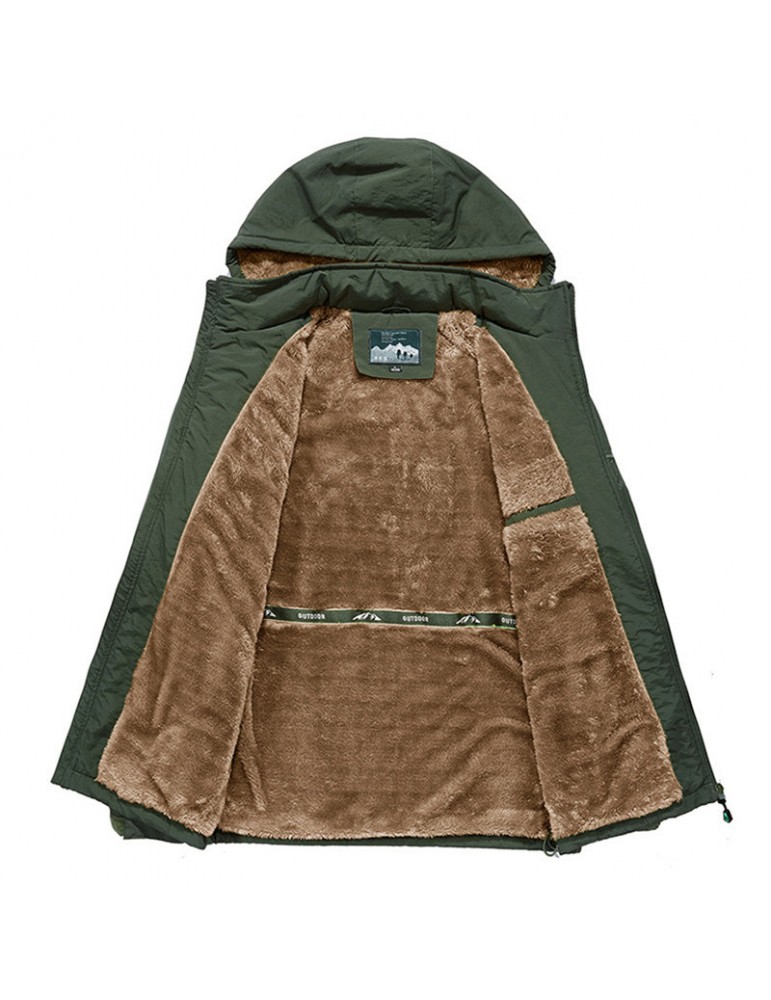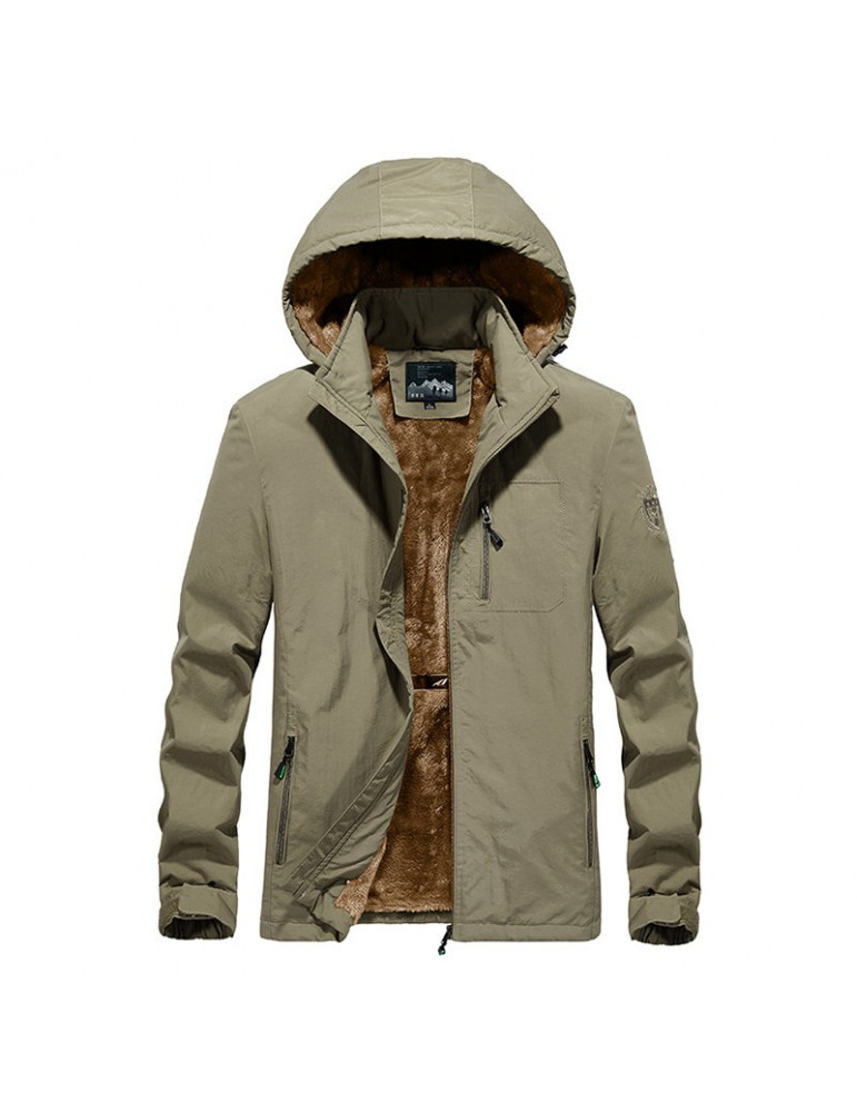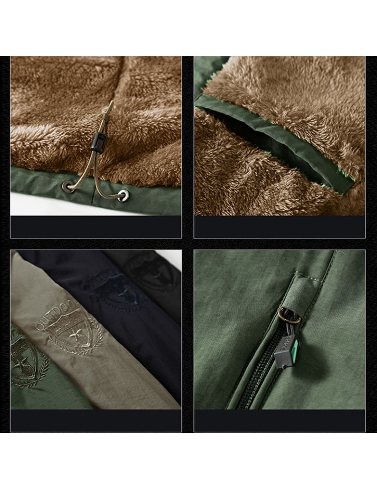 Mens Outdoor Water-repellent Windproof Thicken Fleece Lining Detachable Hood Jacket