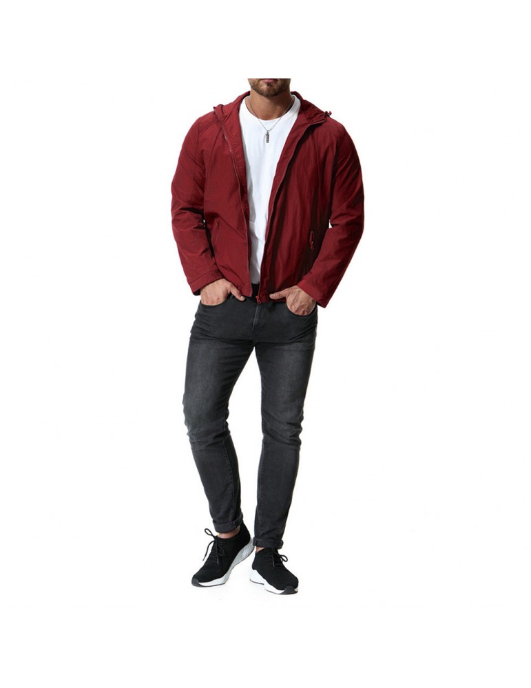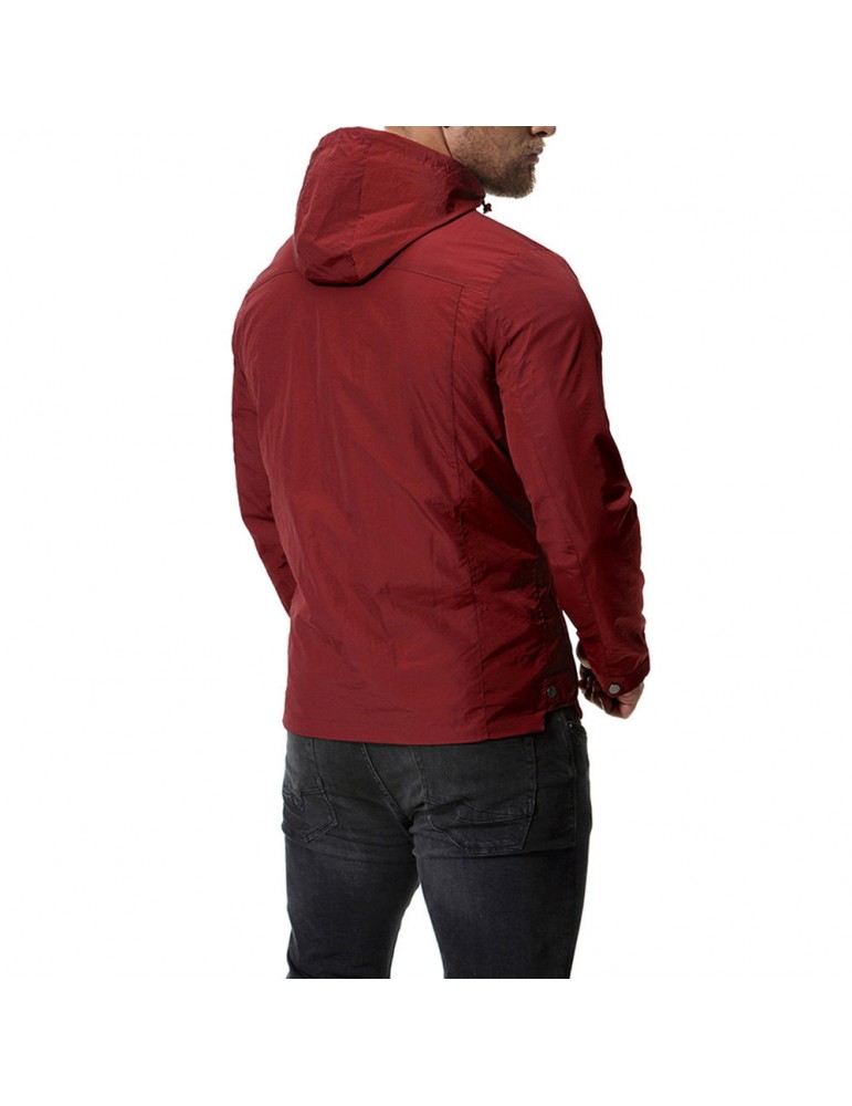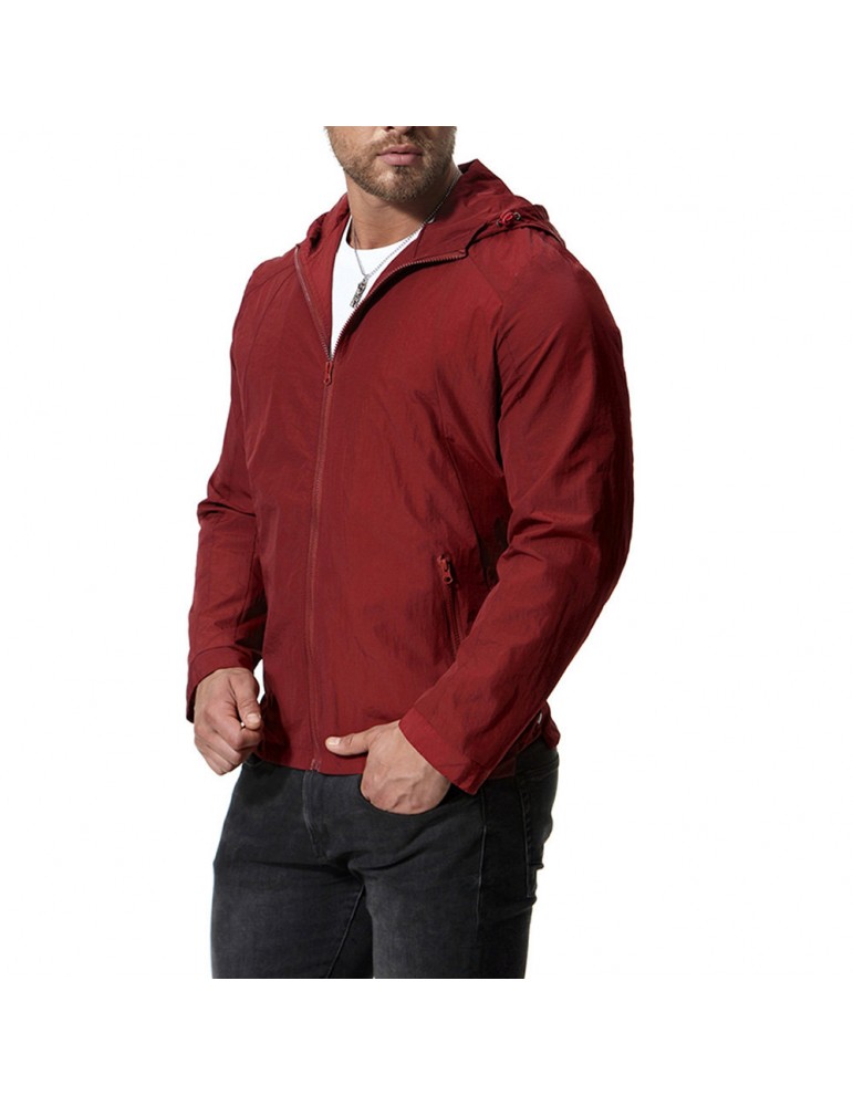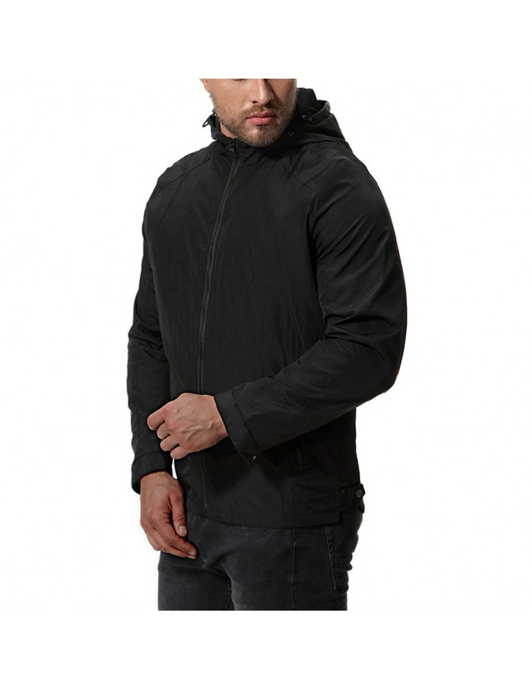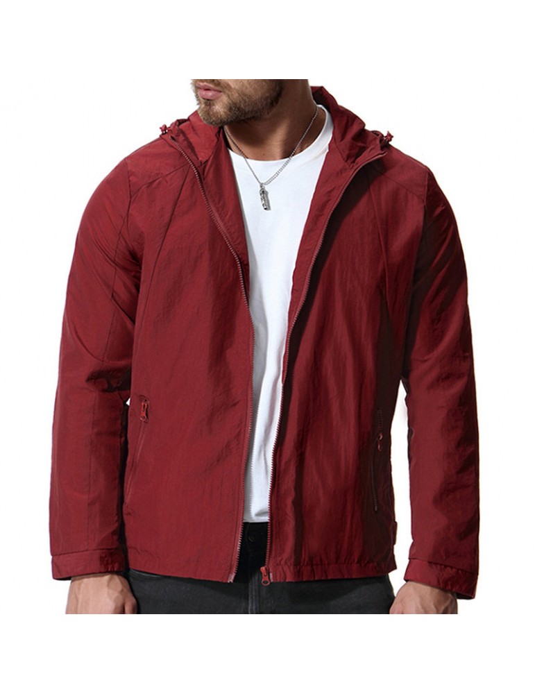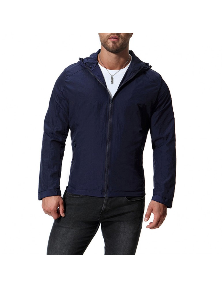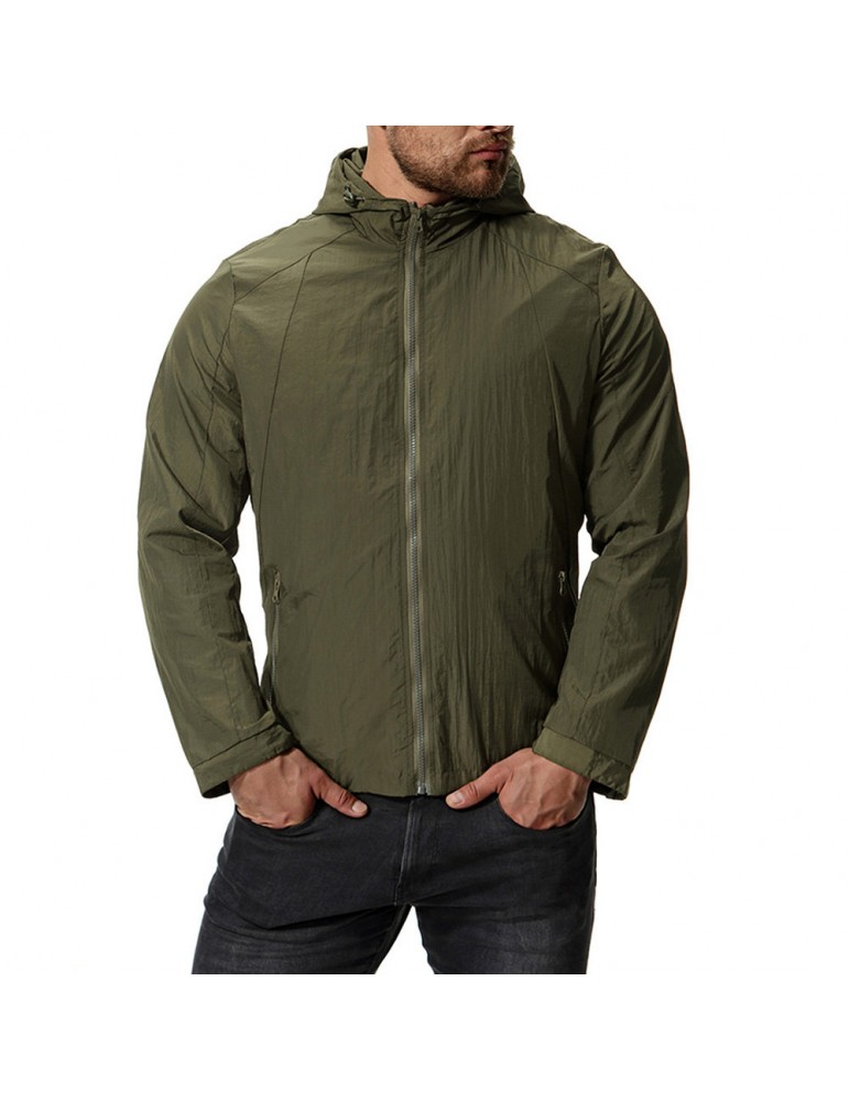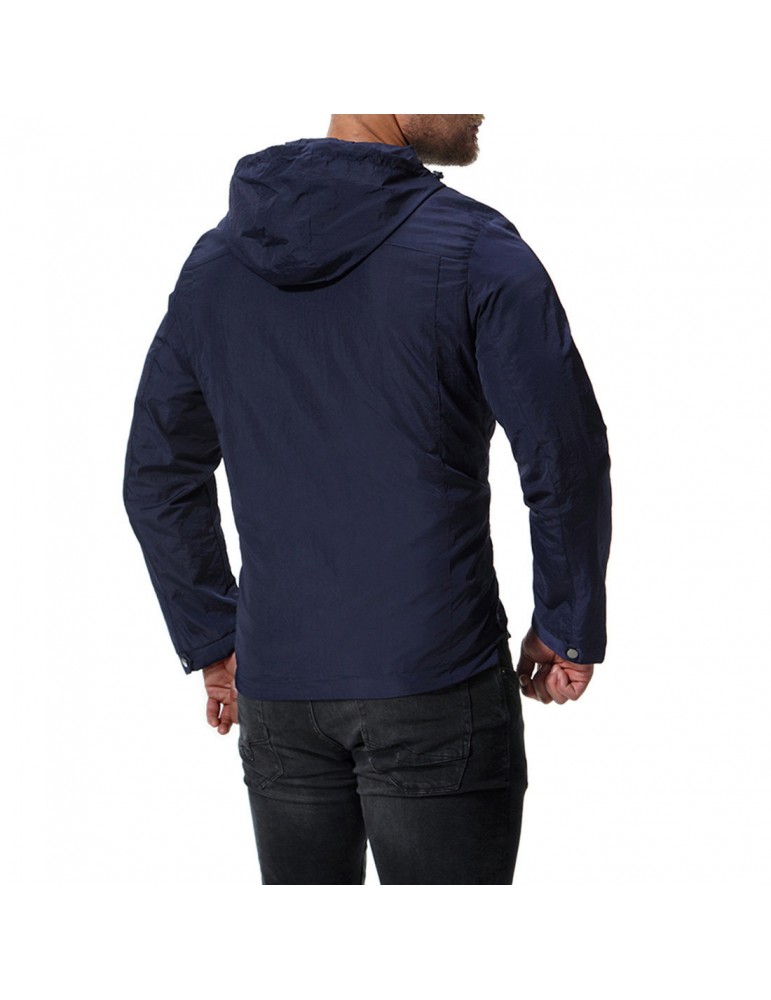 Mens Pure Color Autumn Hooded Zipper Up Pockets Cotton Jackets