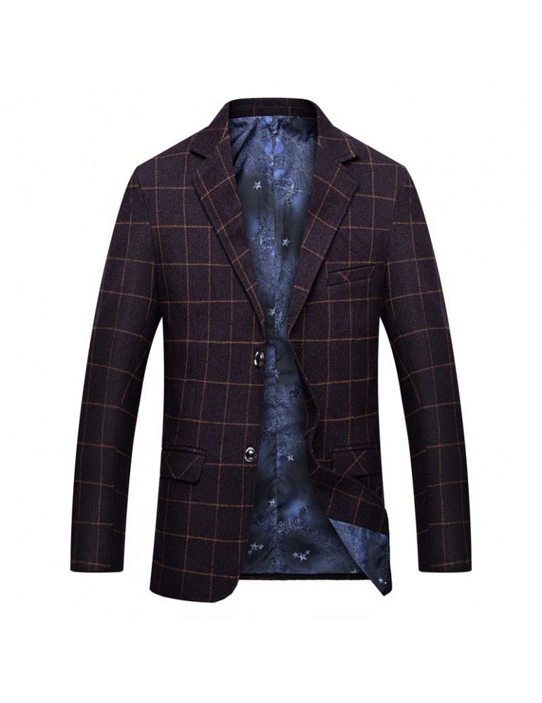 Mens Plaid Blazer Fashion Business Slim Fit Casual Male Blazer Suit Jacket