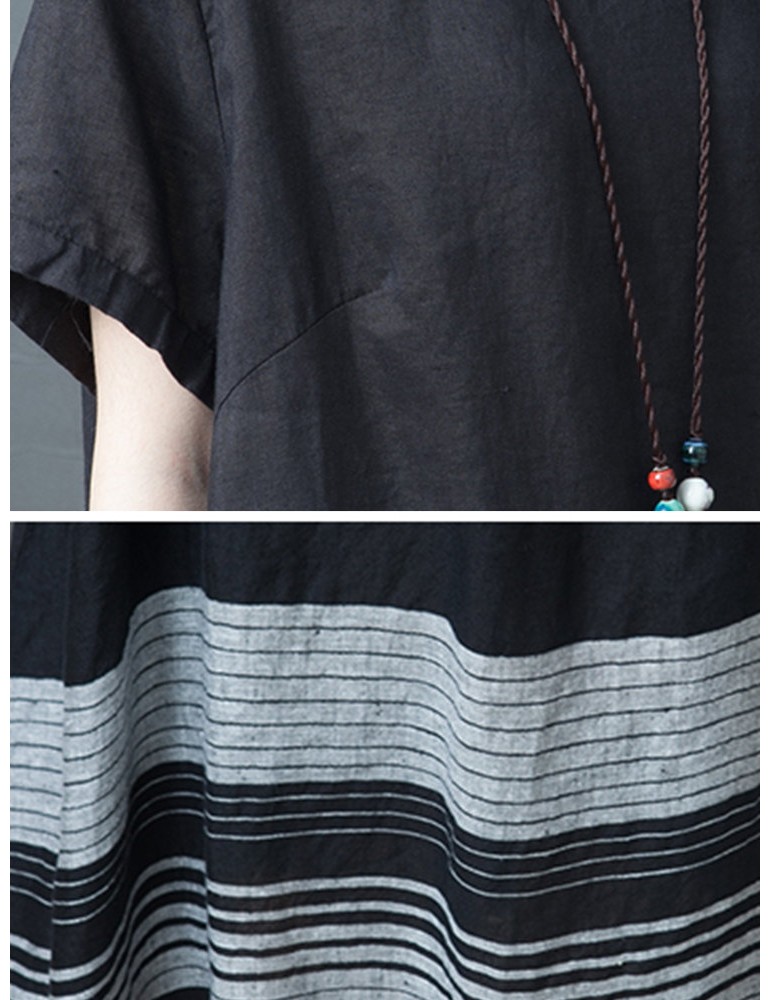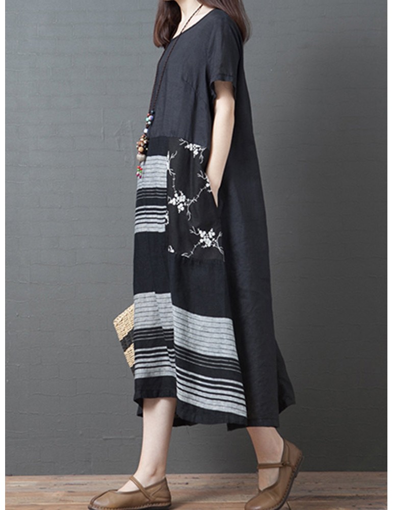 Stripe Print Patchwork Short Sleeve Vintage Dress For Women