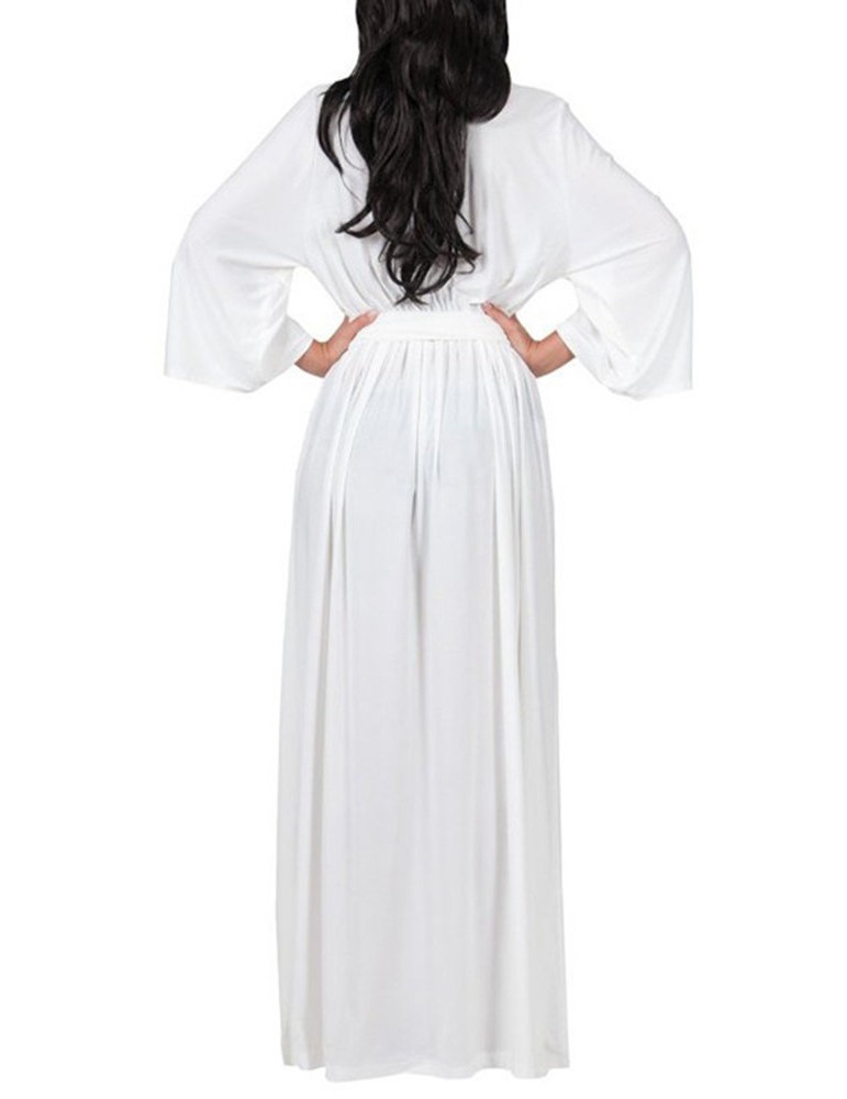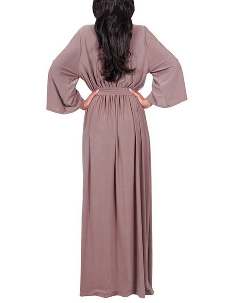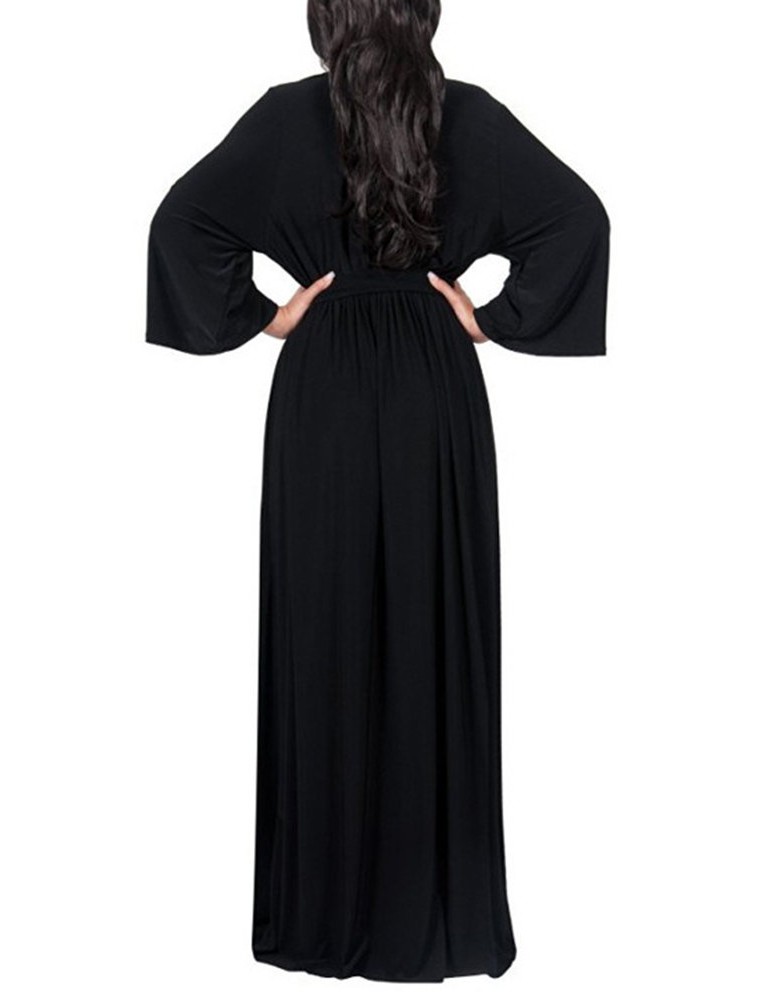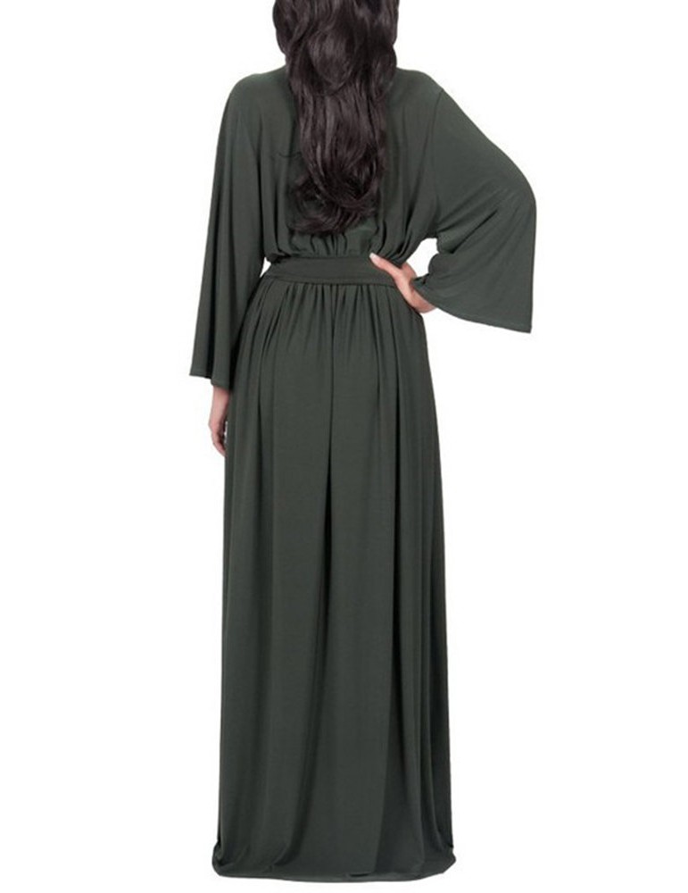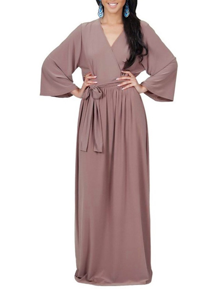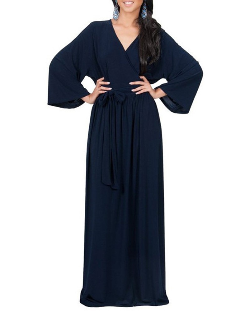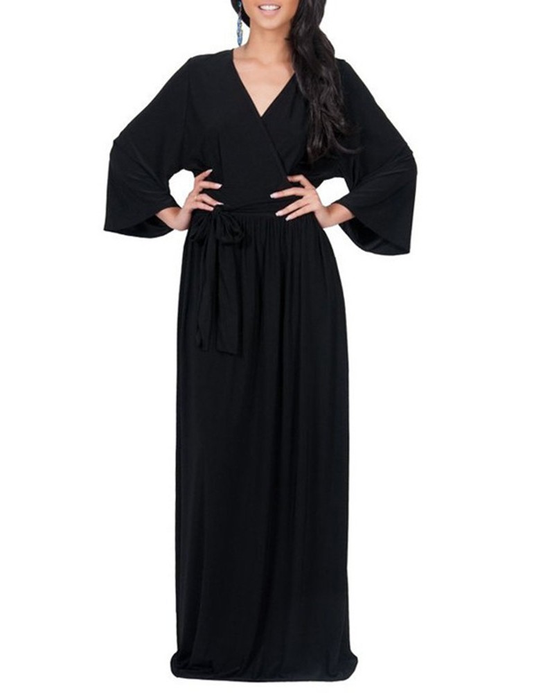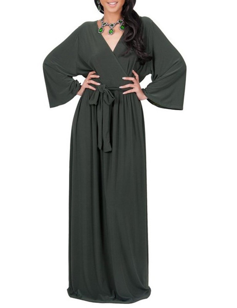 Solid Color Long Sleeve V-neck Maxi Dress