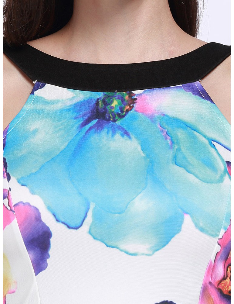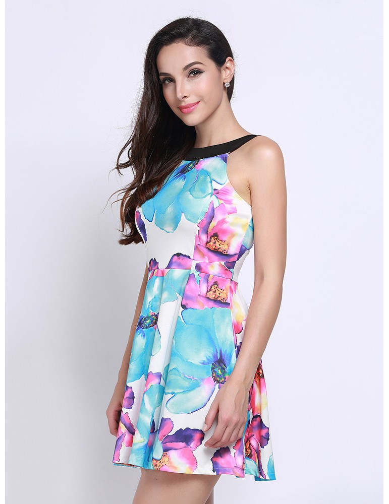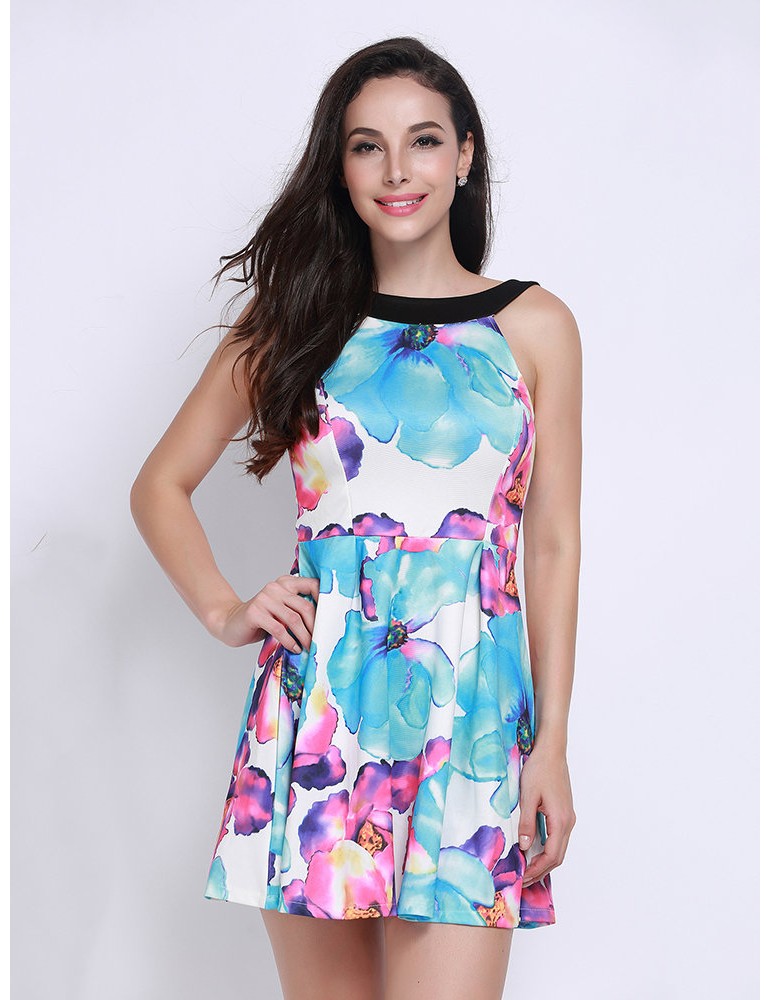 Casual Ladies Floral Print Halter Neck Dress