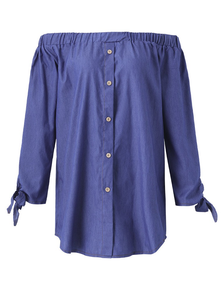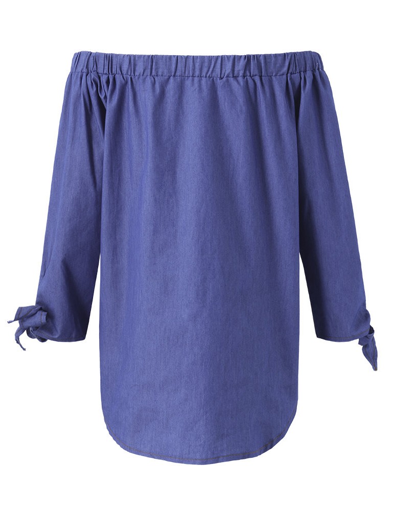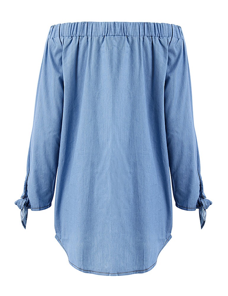 Women Sexy Off-shoulder Denim Long Sleeve Slash Neck Mini Dress