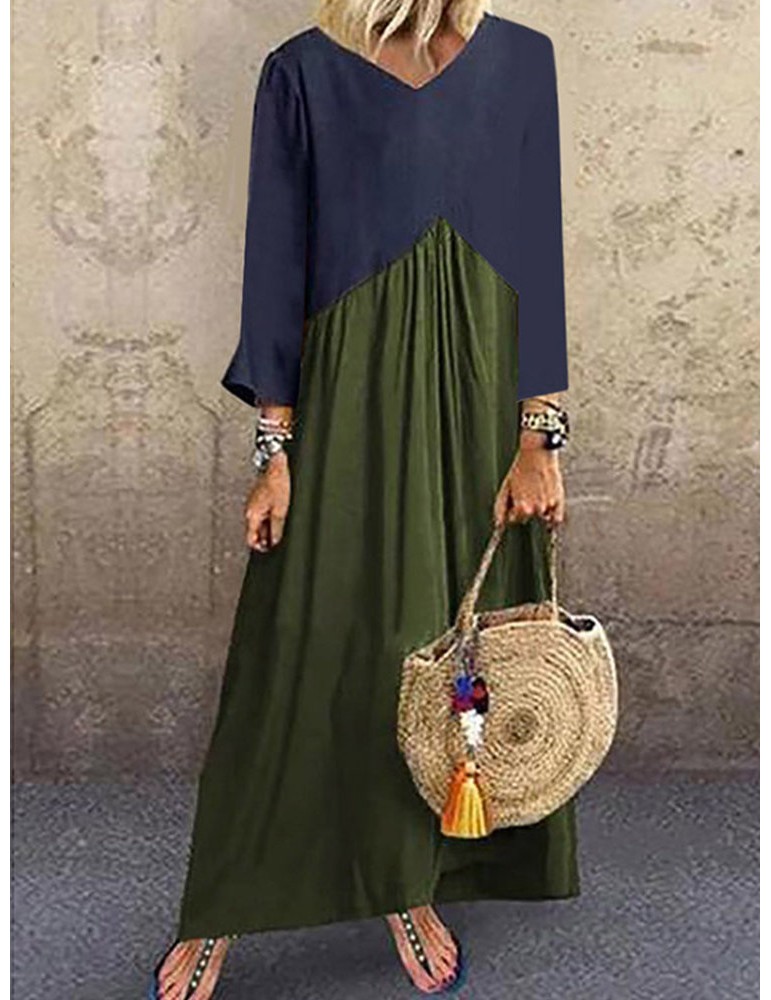 Vintage Patch V-neck Overhead Dress
