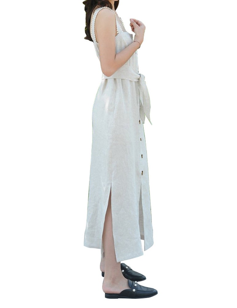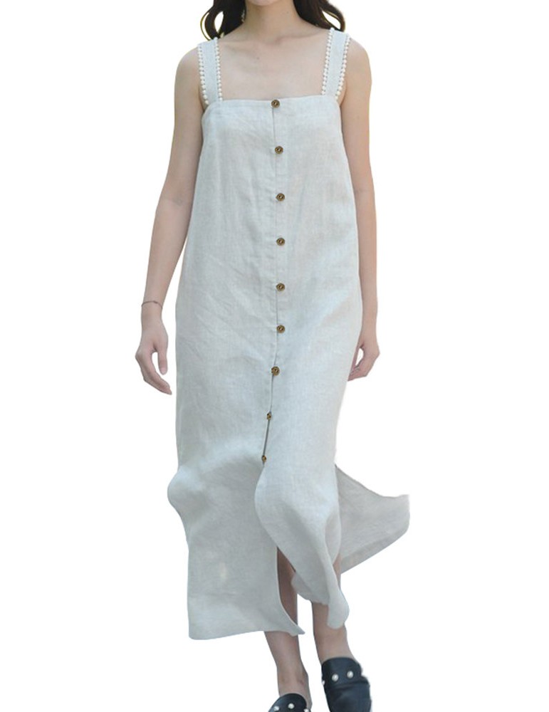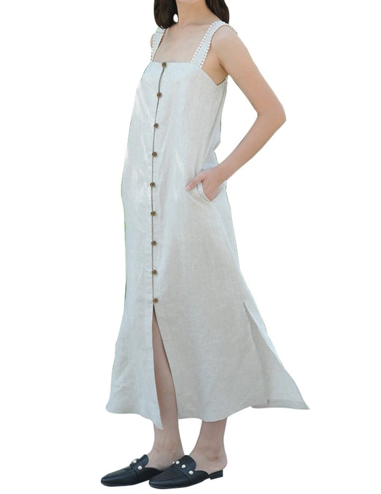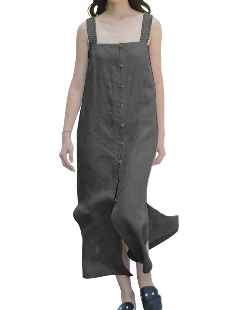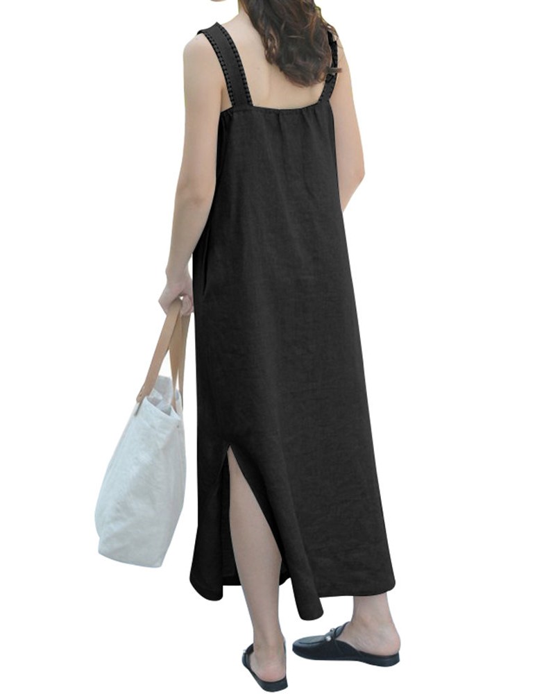 Vintage Straps Suspender Button Down Slit Shirt Dress