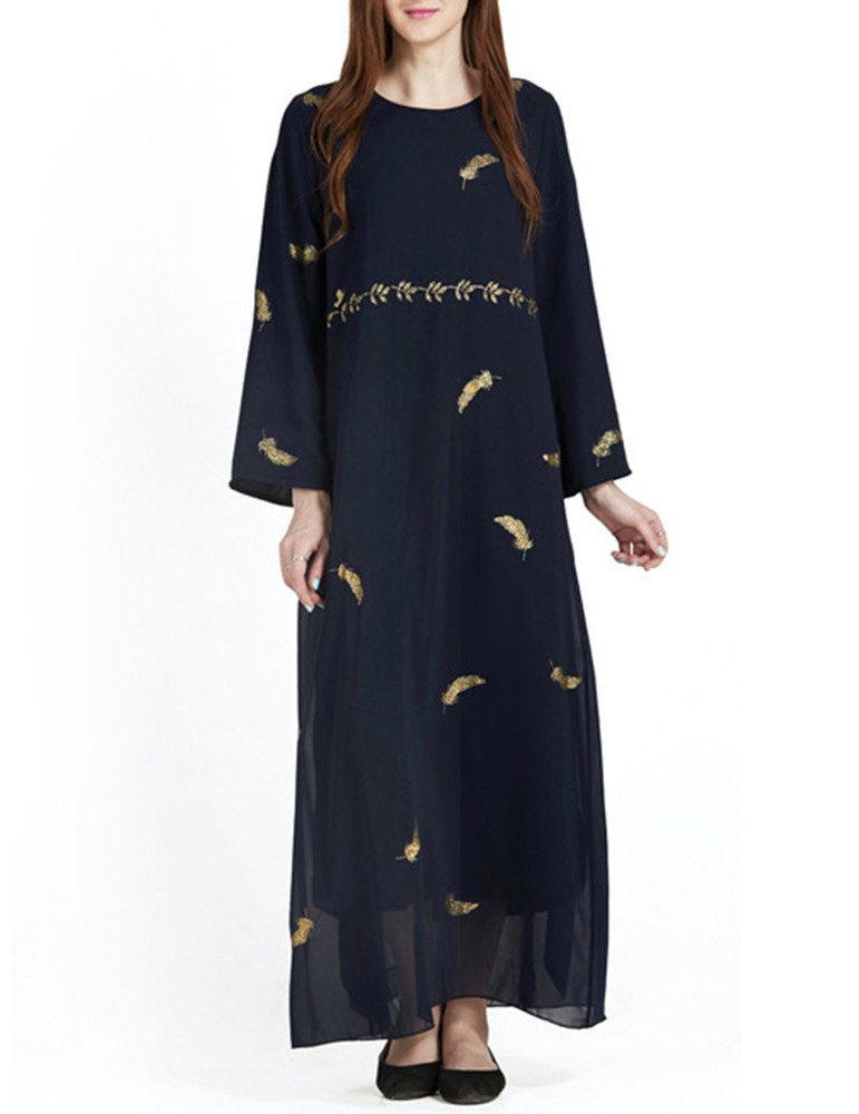 Vintage Women Ethnic Muslim Chiffon Maxi Dresses