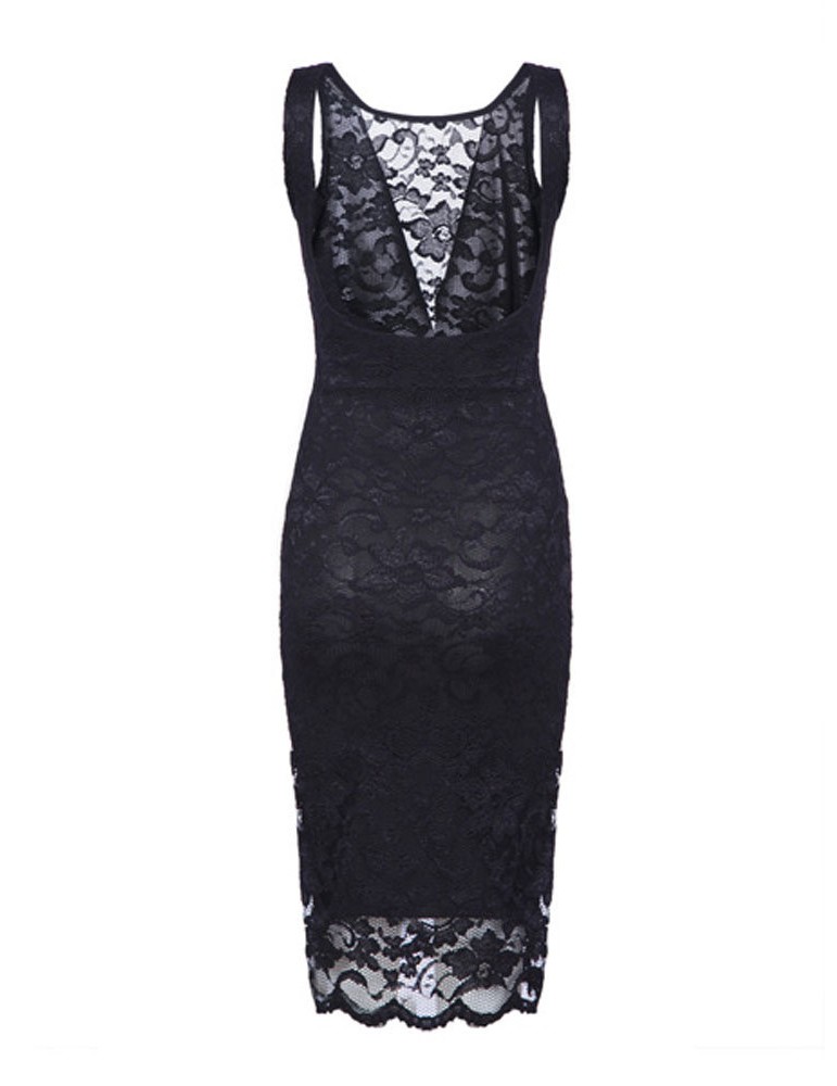 Sexy Lace Deep V-neck Transparent Sleeveless Backless Bodycon Women Dress