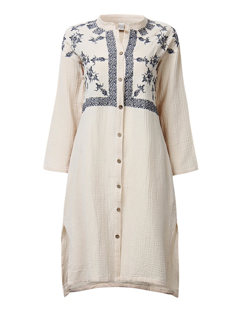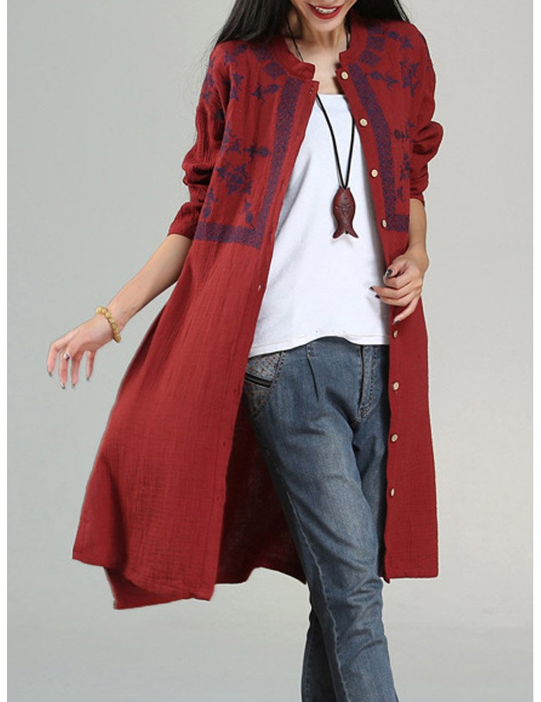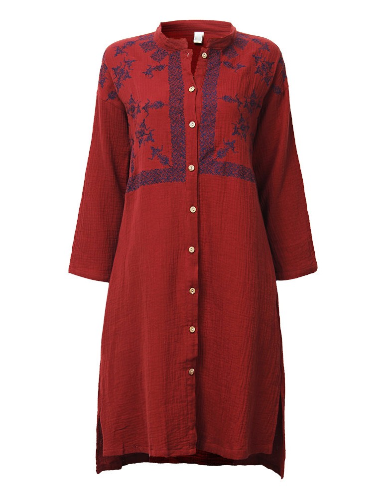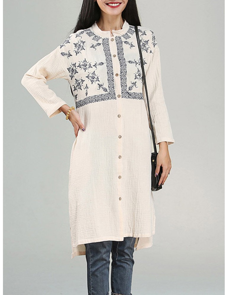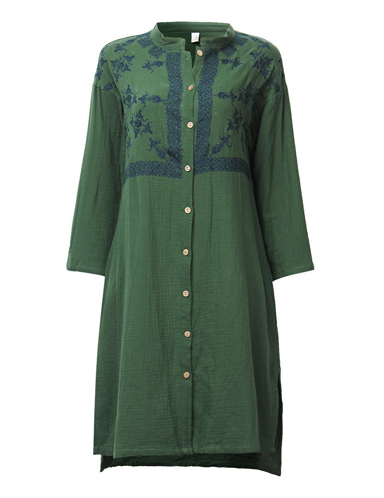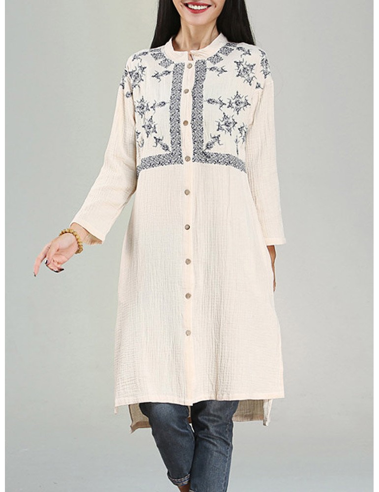 Vintage Embroidery Mandarin Collar Long Sleeve Women Dresses