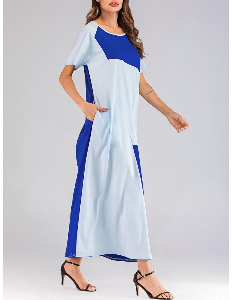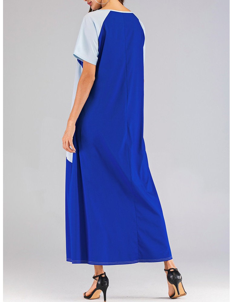 Patchwork Crew Neck Short Sleeve Maxi Dress