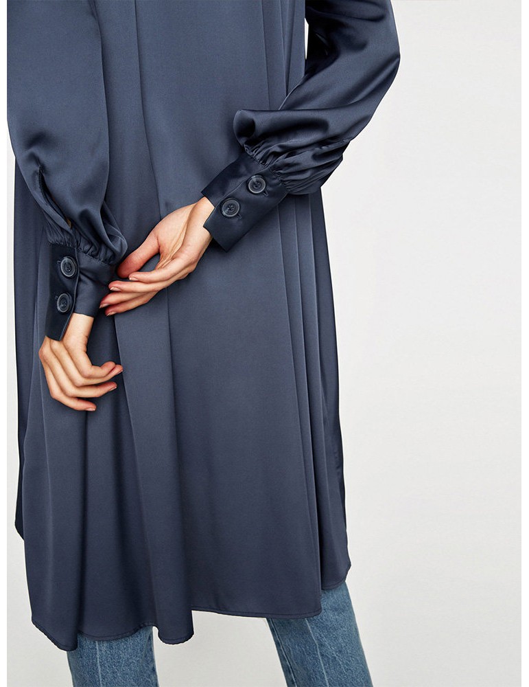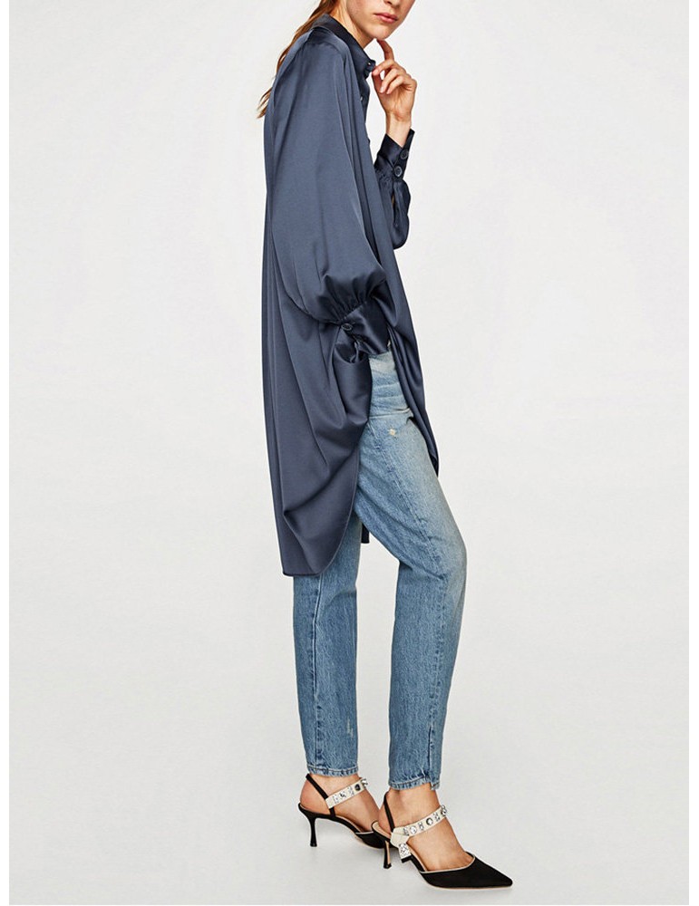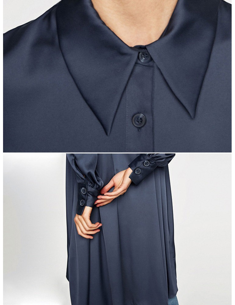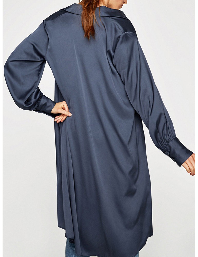 Long Sleeve Dark Blue Asymmetrical Casual Shirt Dresses