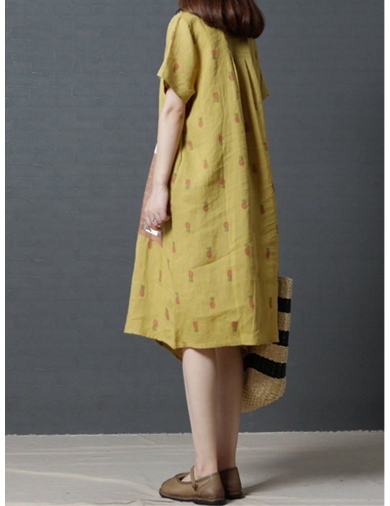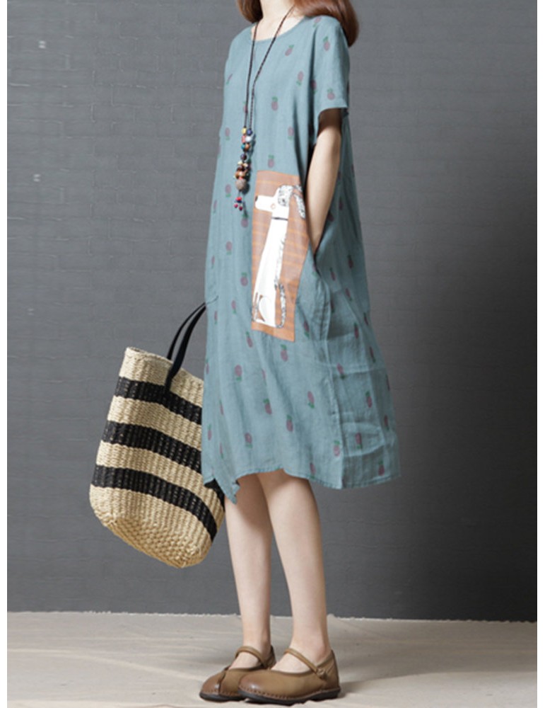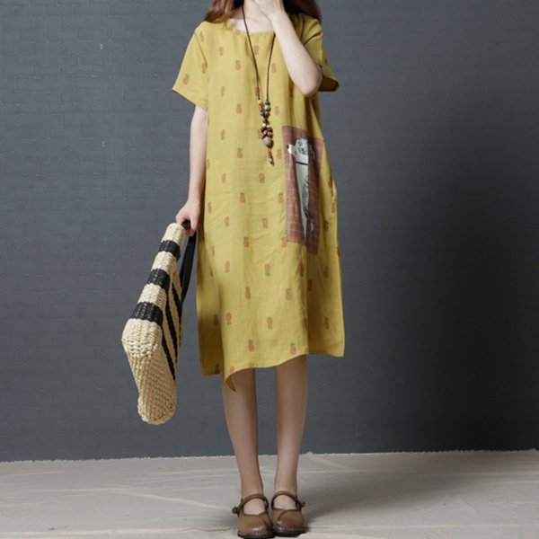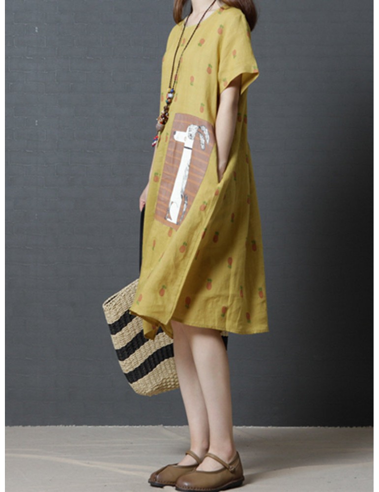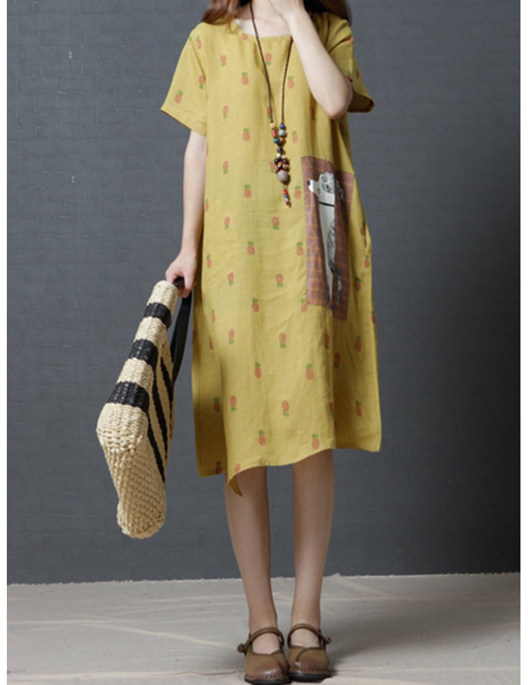 Casual Strawberry Dog Pattern Short Sleeve O-neck Dress For Women