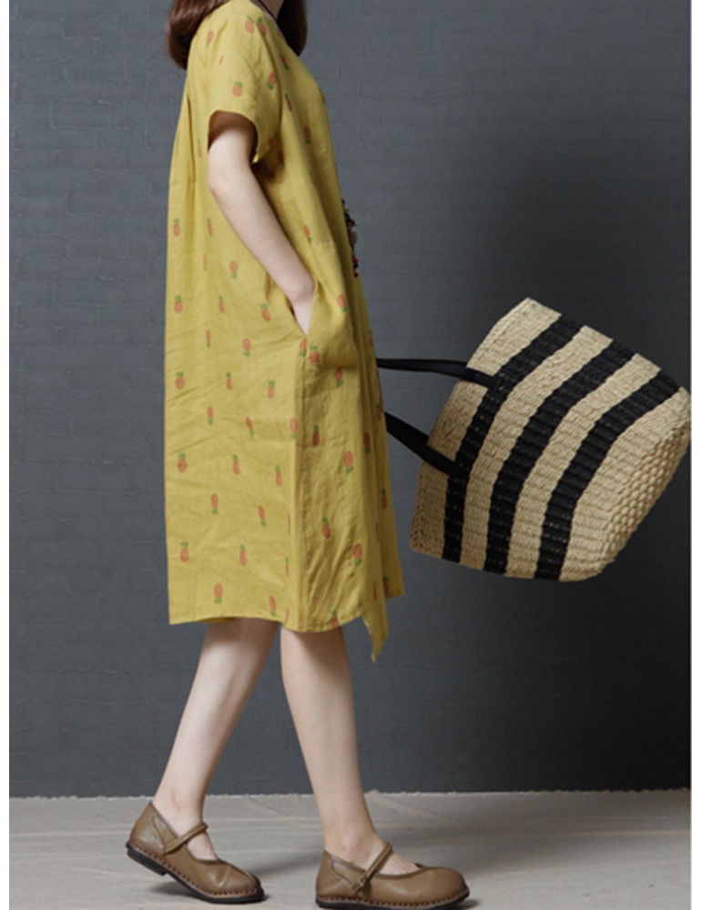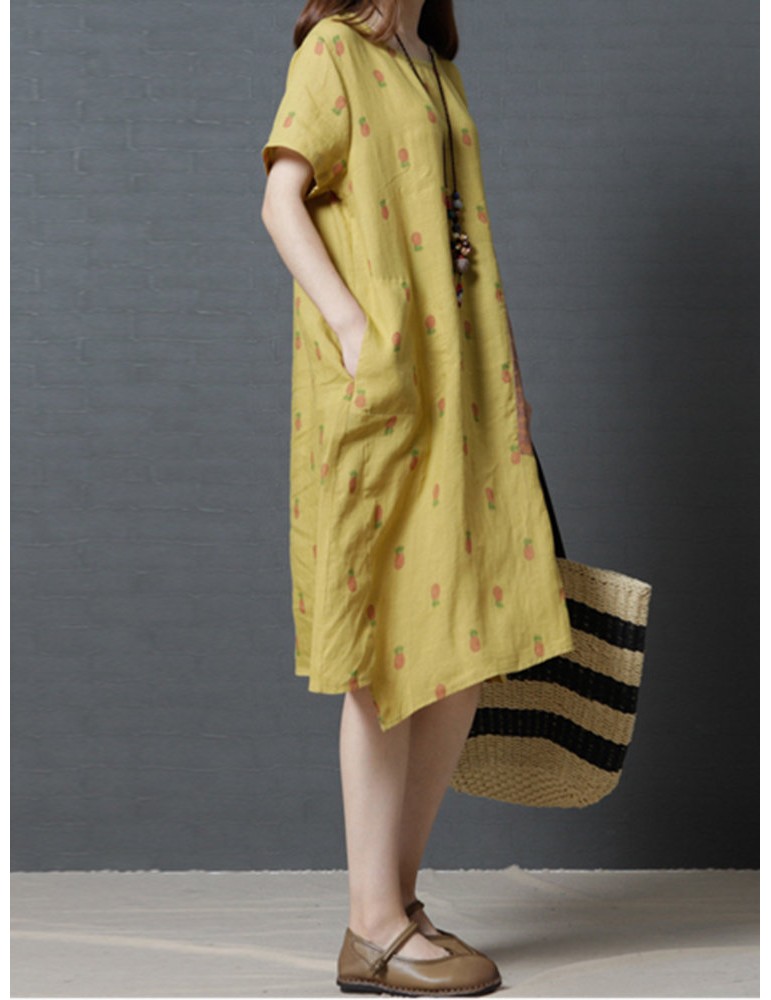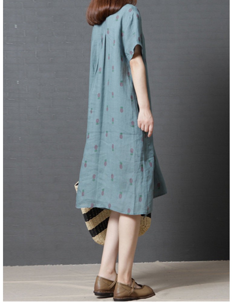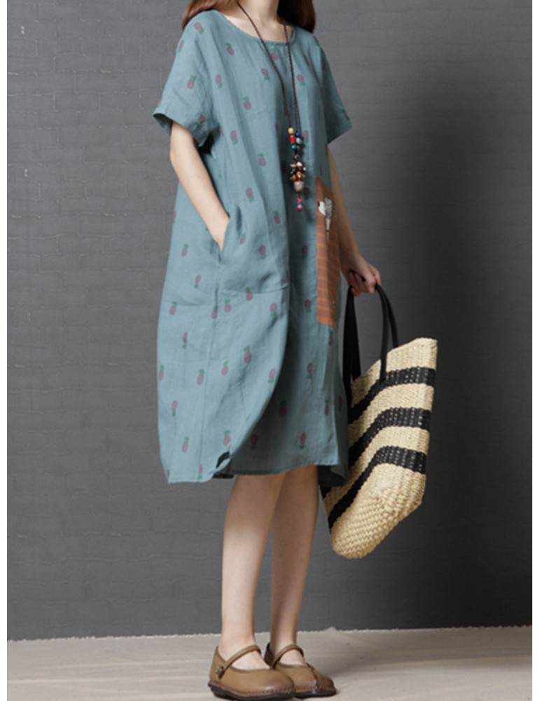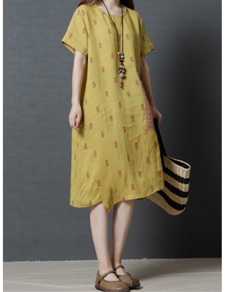 Casual Strawberry Dog Pattern Short Sleeve O-neck Dress For Women