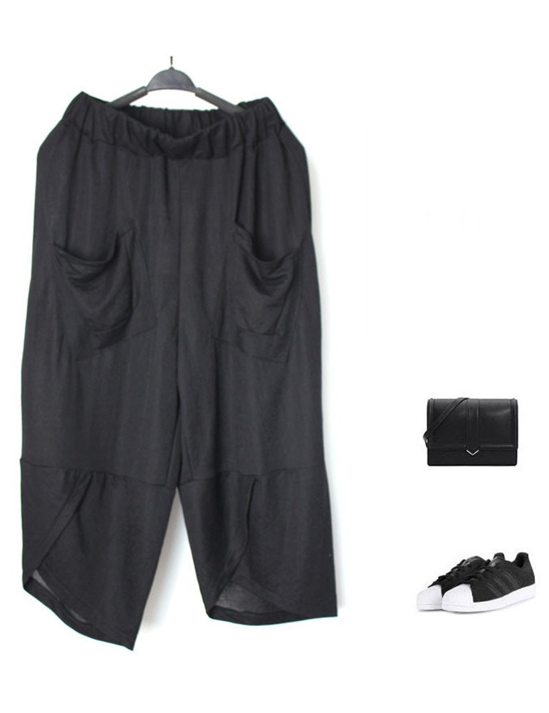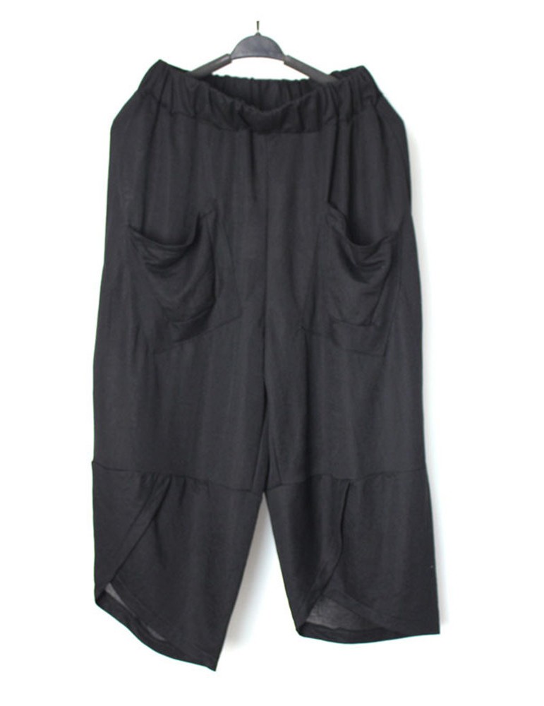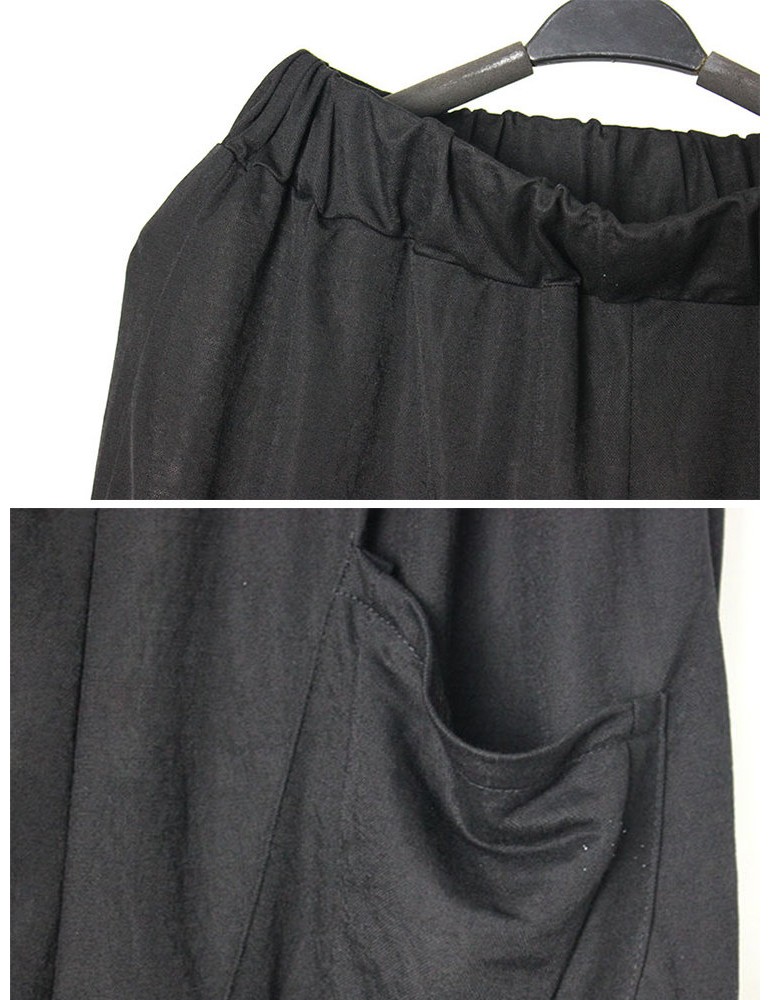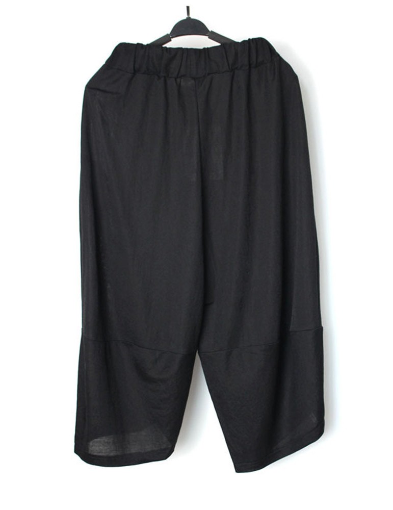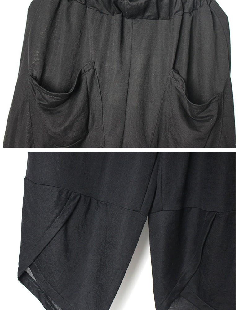 Asymmetrical Solid Color Cotton Loose Black Capris