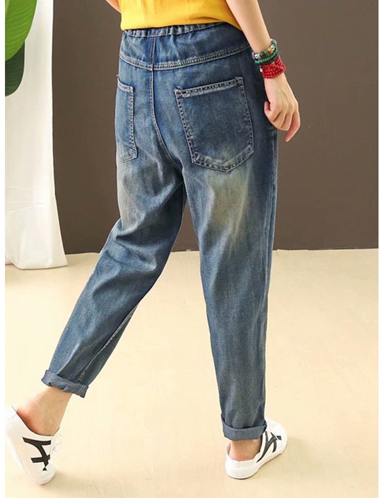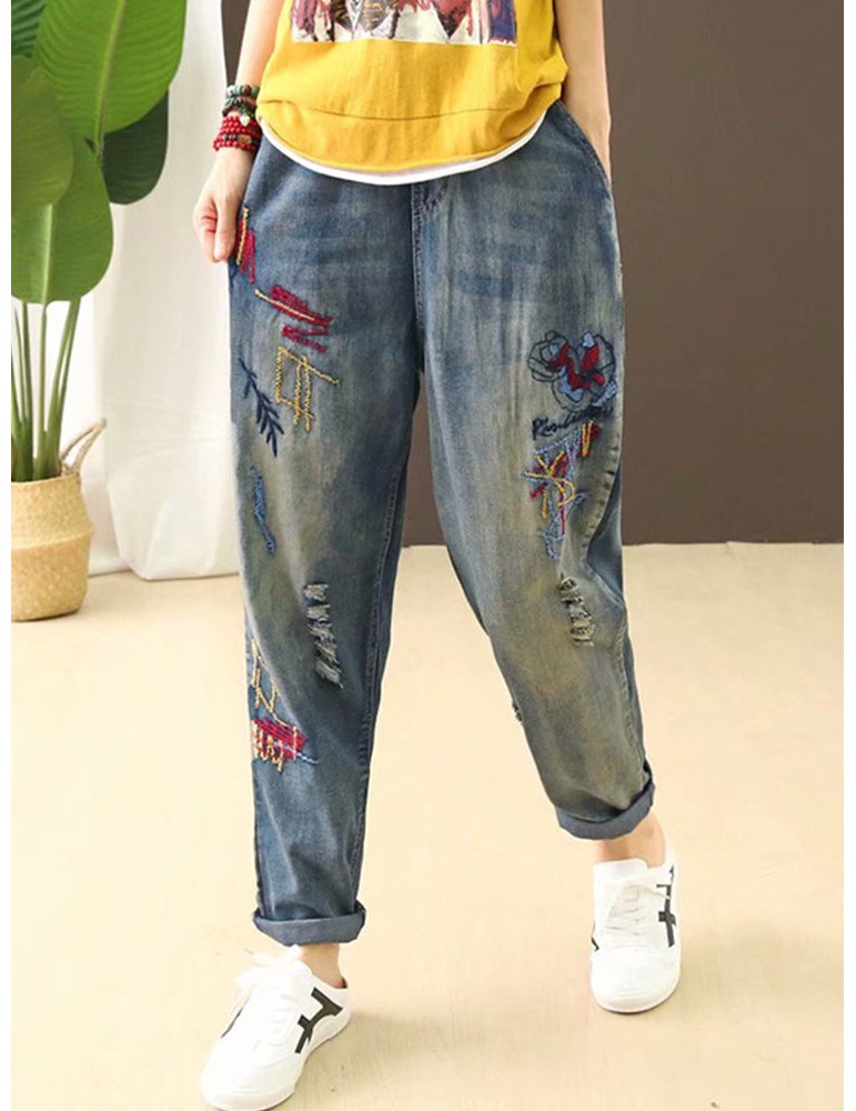 Cartoon Embroidery Loose Harlan Jeans For Women