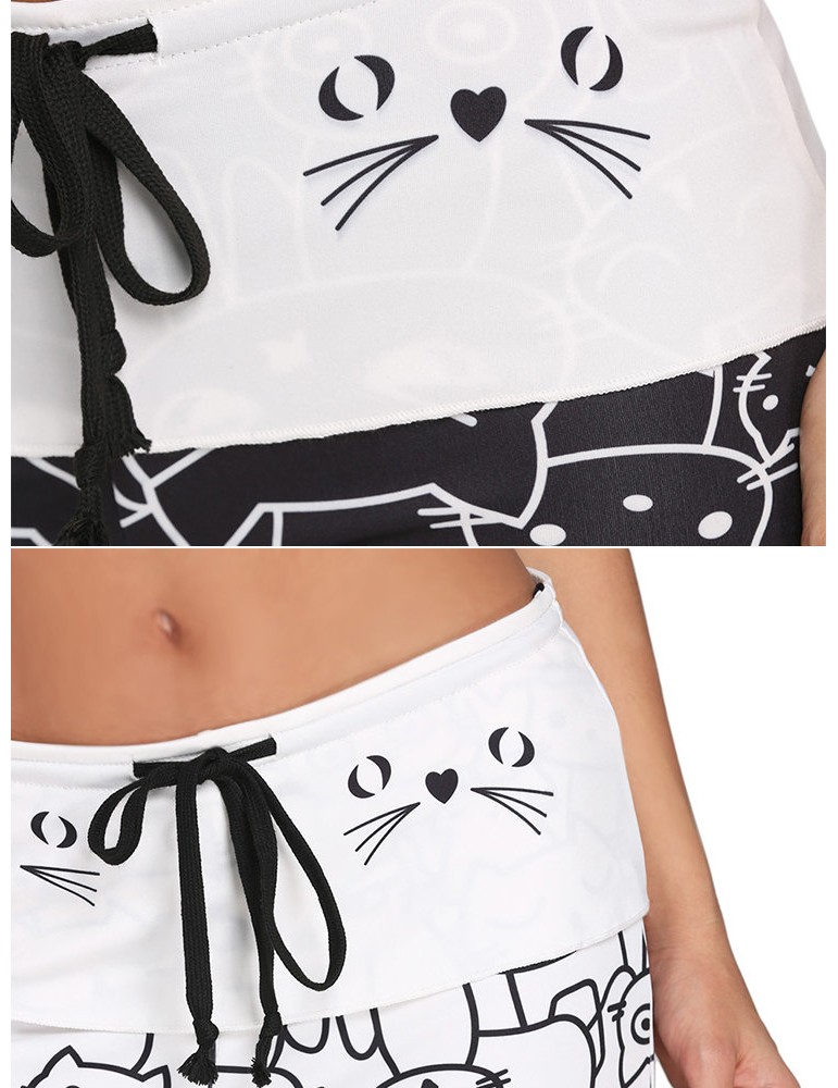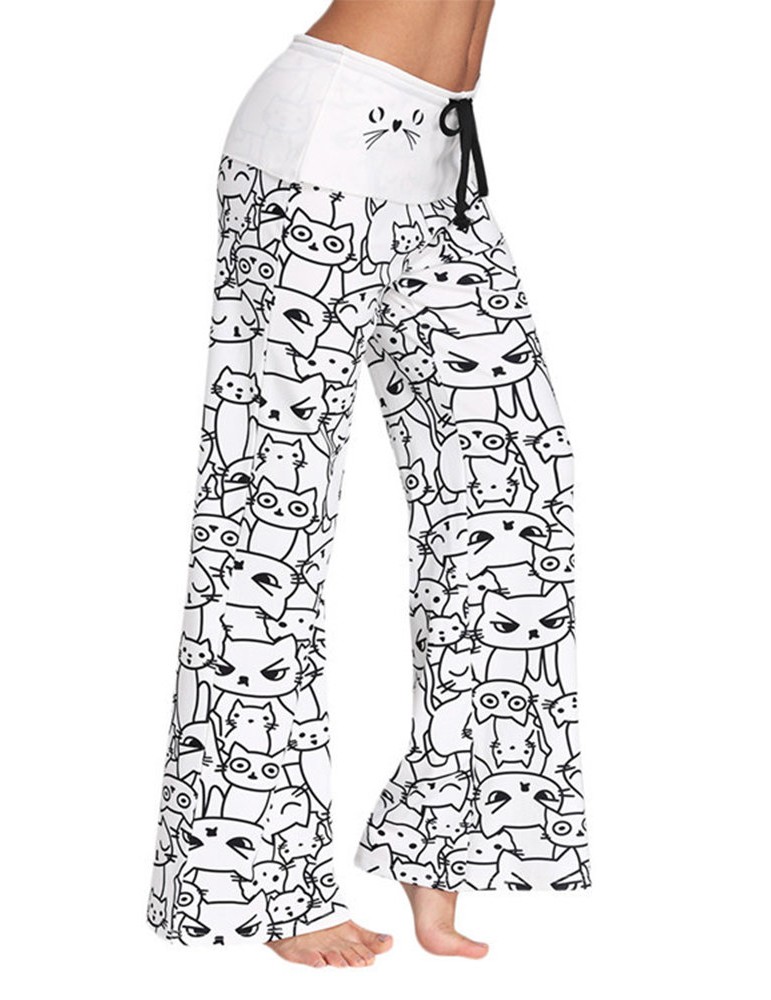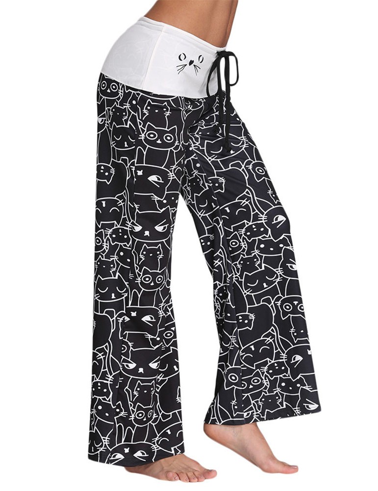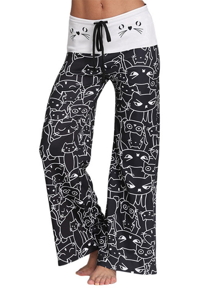 Women Cats Printed Elastic Waist Casual Pants