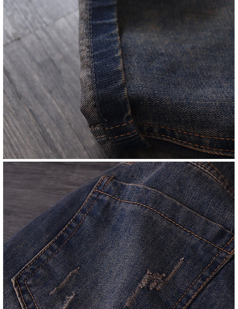 Patch Embroidered Ripped Drawstring Vintage Denim