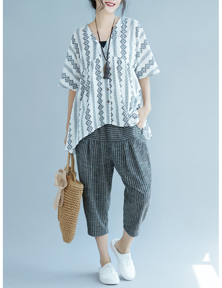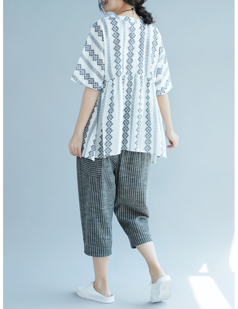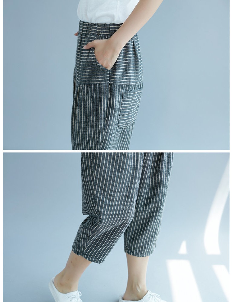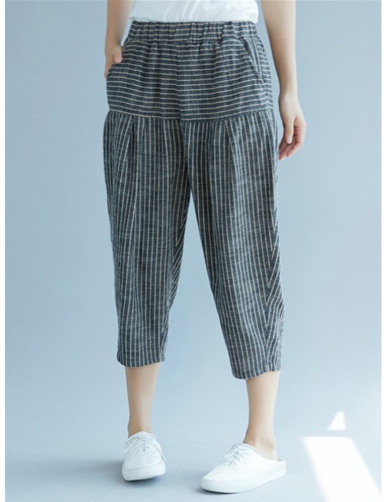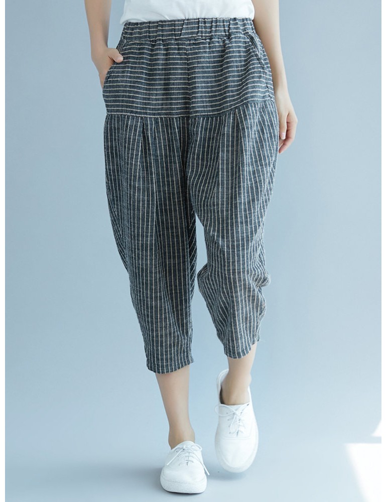 Elastic Waist Stripe Casual Harem Pants With Pockets