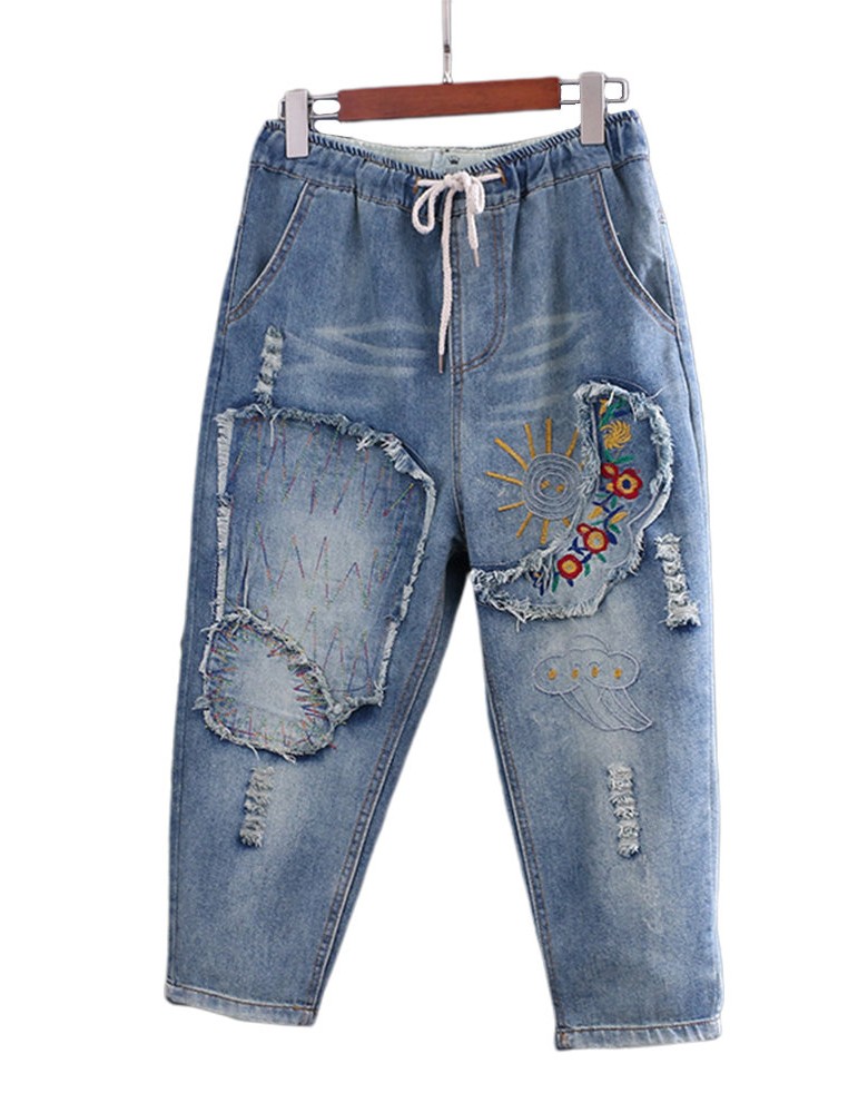 Casual Embroidery Patch Harem Denim