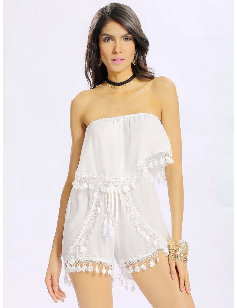 Women Casual Off Shoulder Lace-up Bandage Sleeveless Jumpsuit