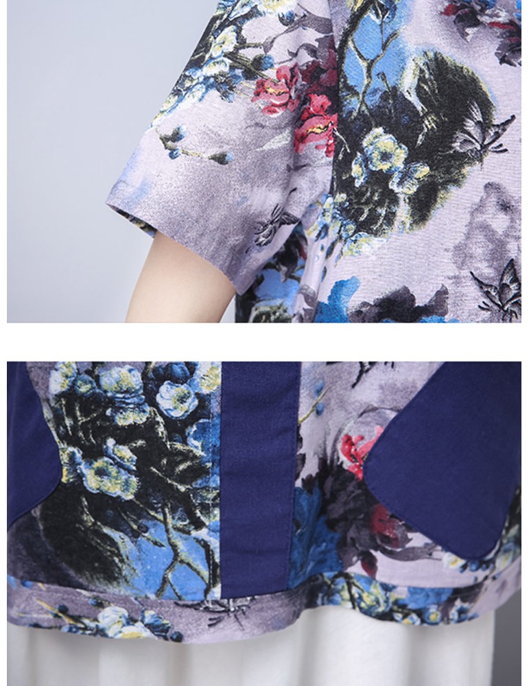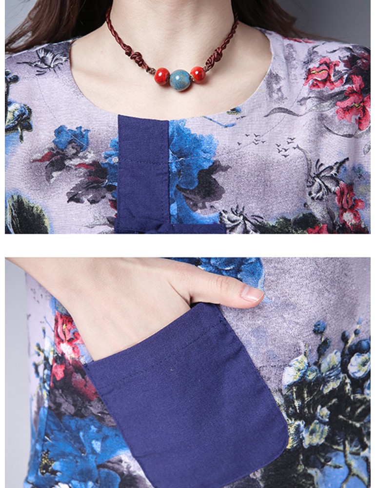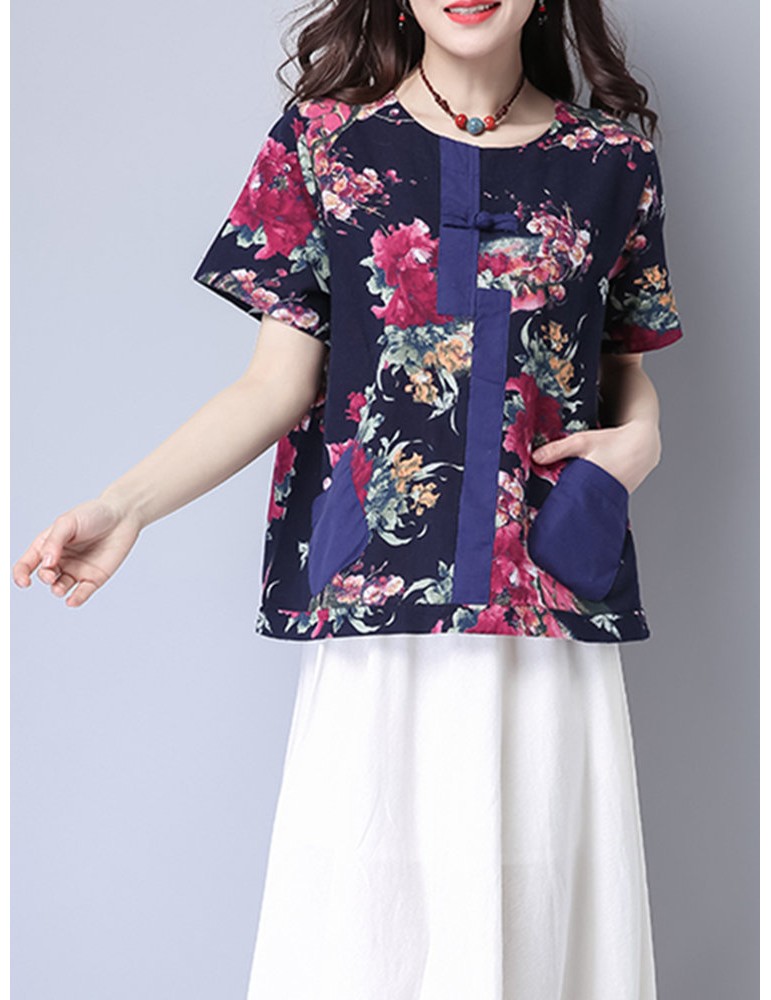 Women Floral Printed Pocket Short Sleeve Vintage T-shirts