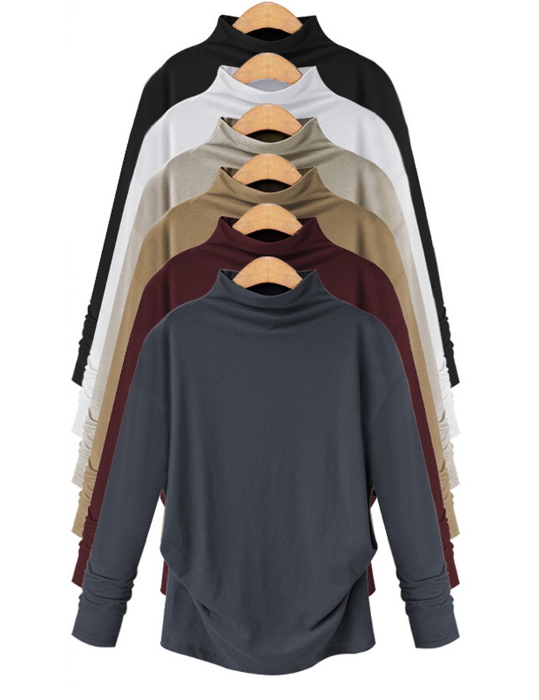 Solid Color High Neck Bottoming Long Sleeve T-Shirts