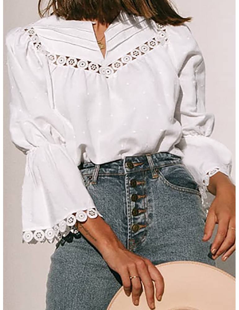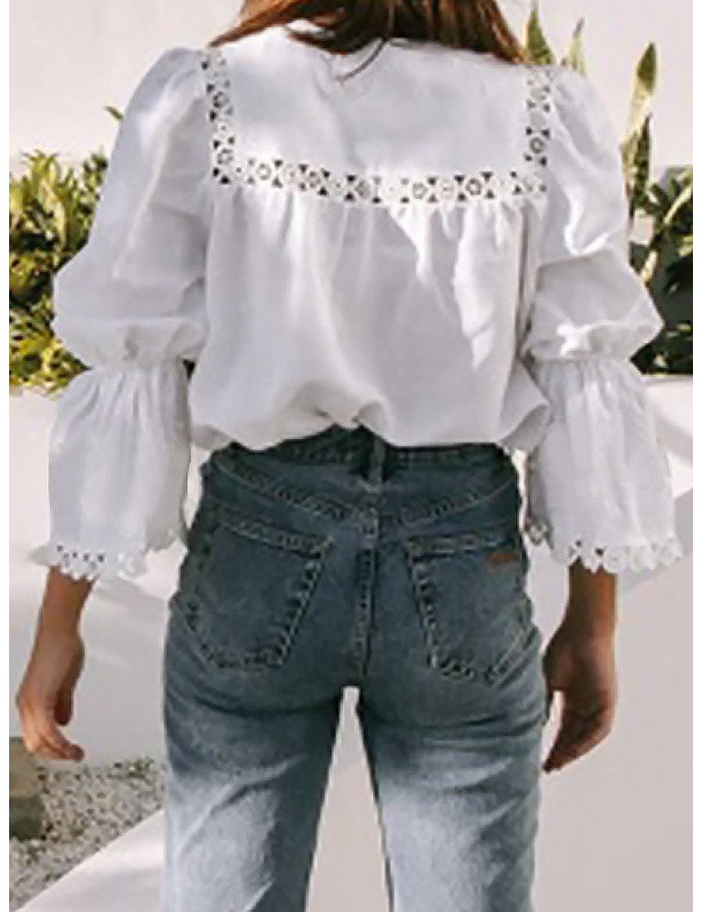 Chic Hollow Out Solid Color 3/4 Sleeve Blouse
