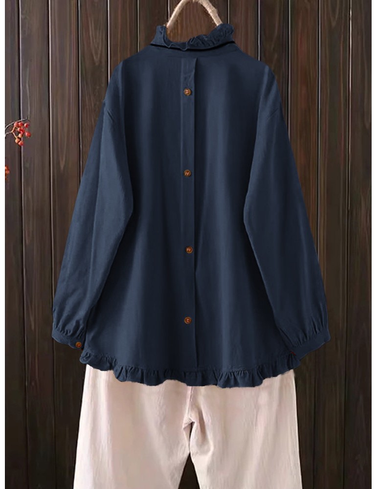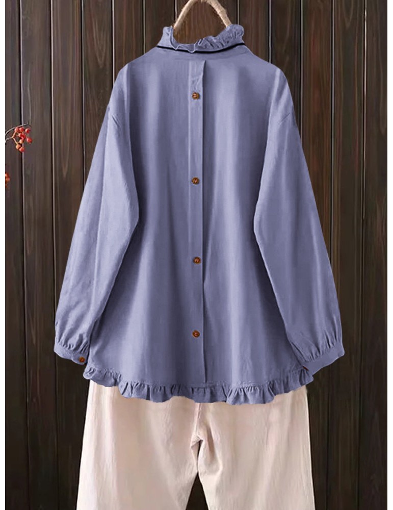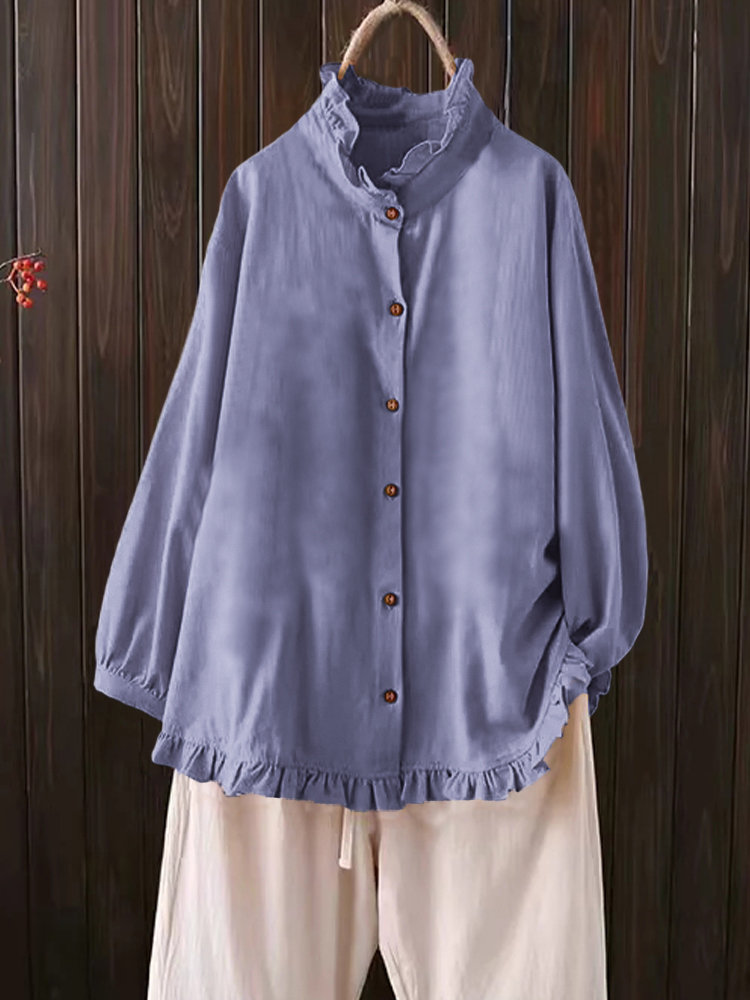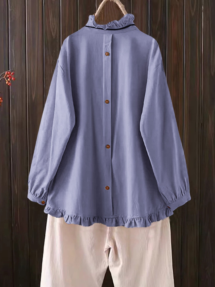 Casual Solid Color Ruffles Button Blouse