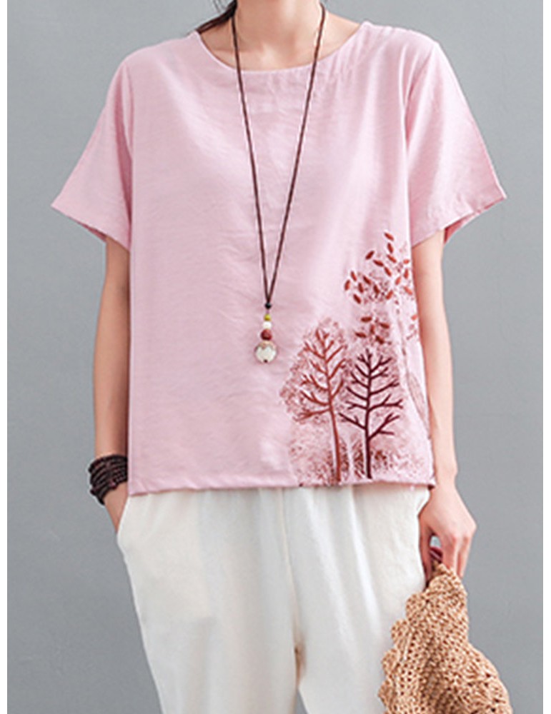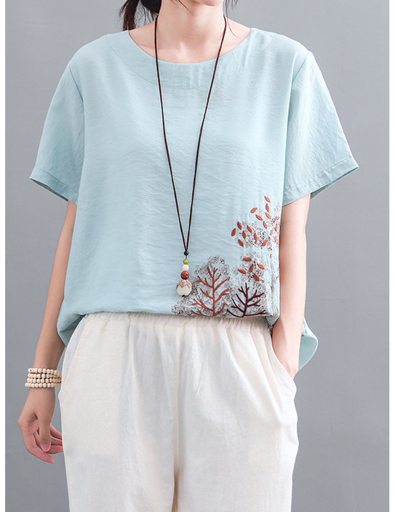 Vintage Embroidery Short Sleeve Summer T-Shirt