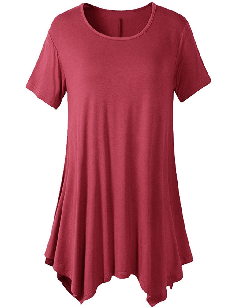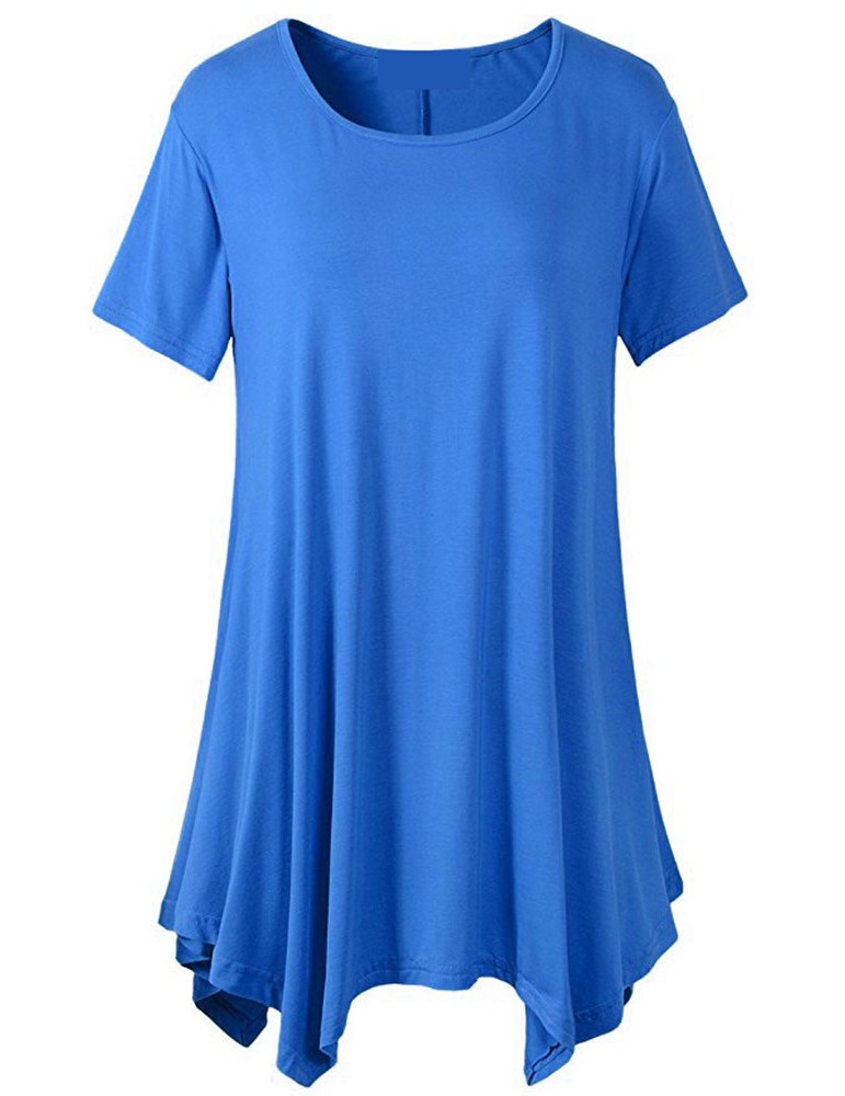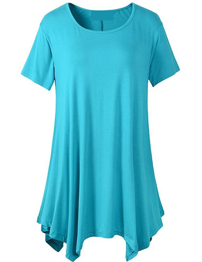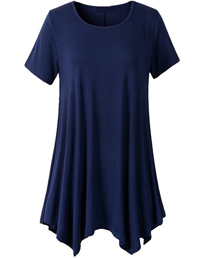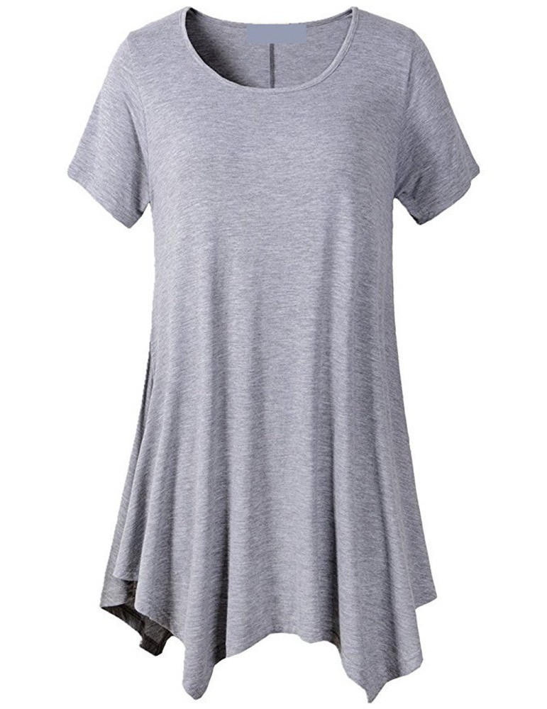 Casual Women Short Sleeve Irregular Hem Pure Color T-shirts
