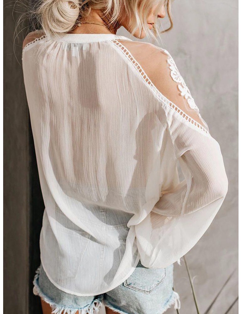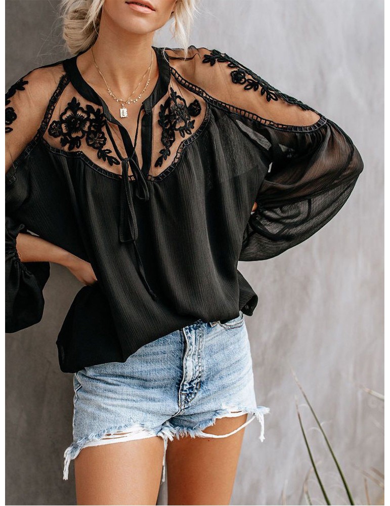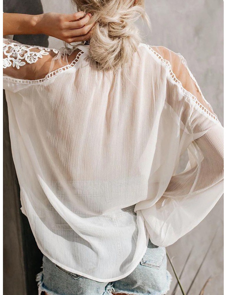 Sexy Perspective V-neck Long Sleeve Blouse