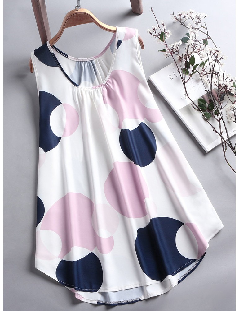 Chic Polka Dot Sleeveless Casual Blouses