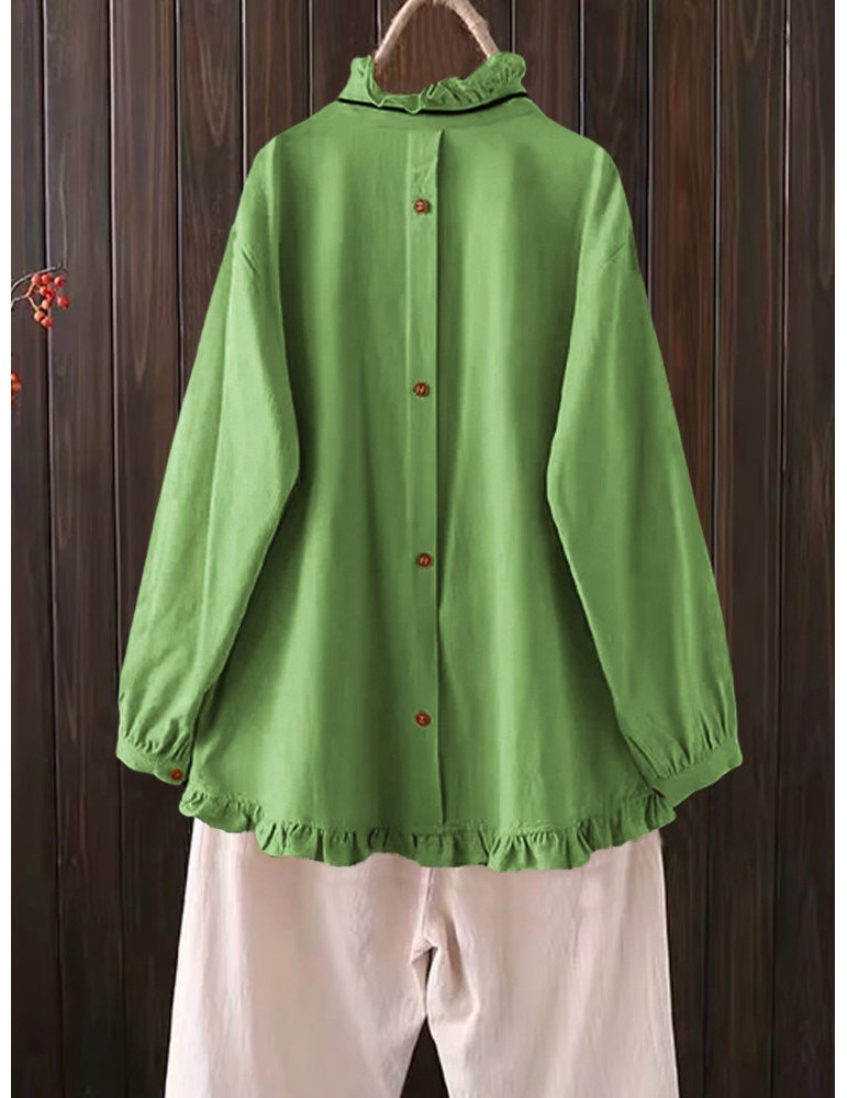 Casual Embroidery Ruffles Button Blouse