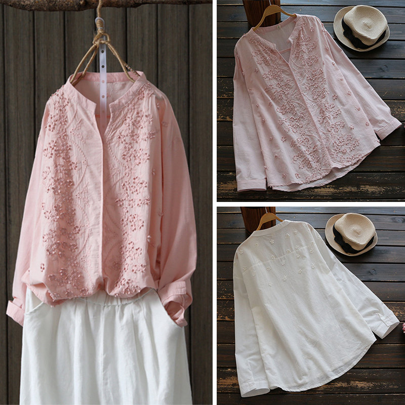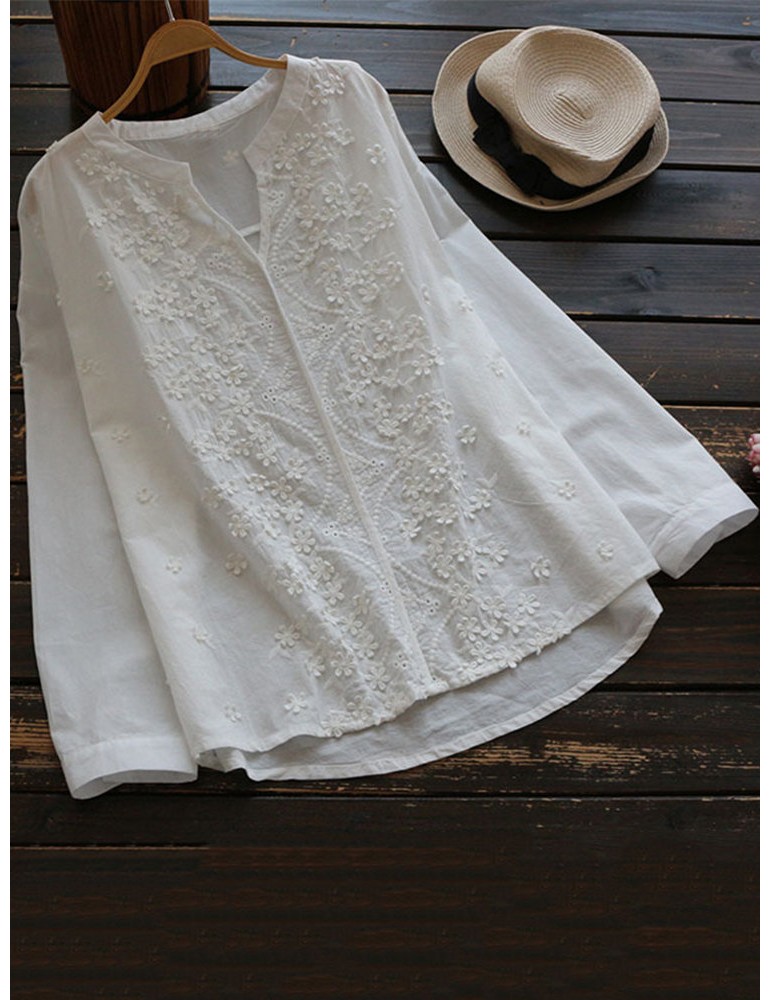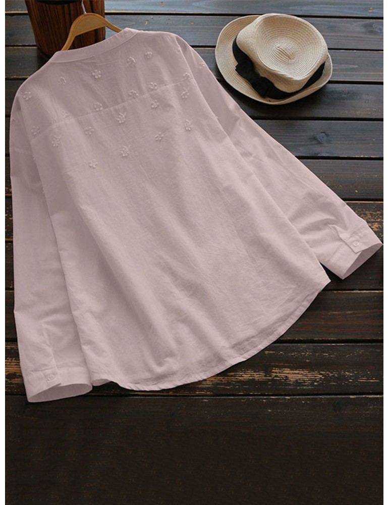 Stereoscopic Floral Solid Color Long Sleeve Vintage Blouses