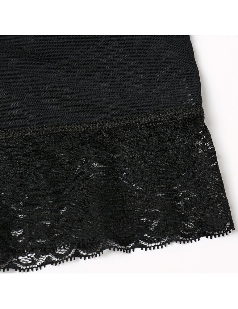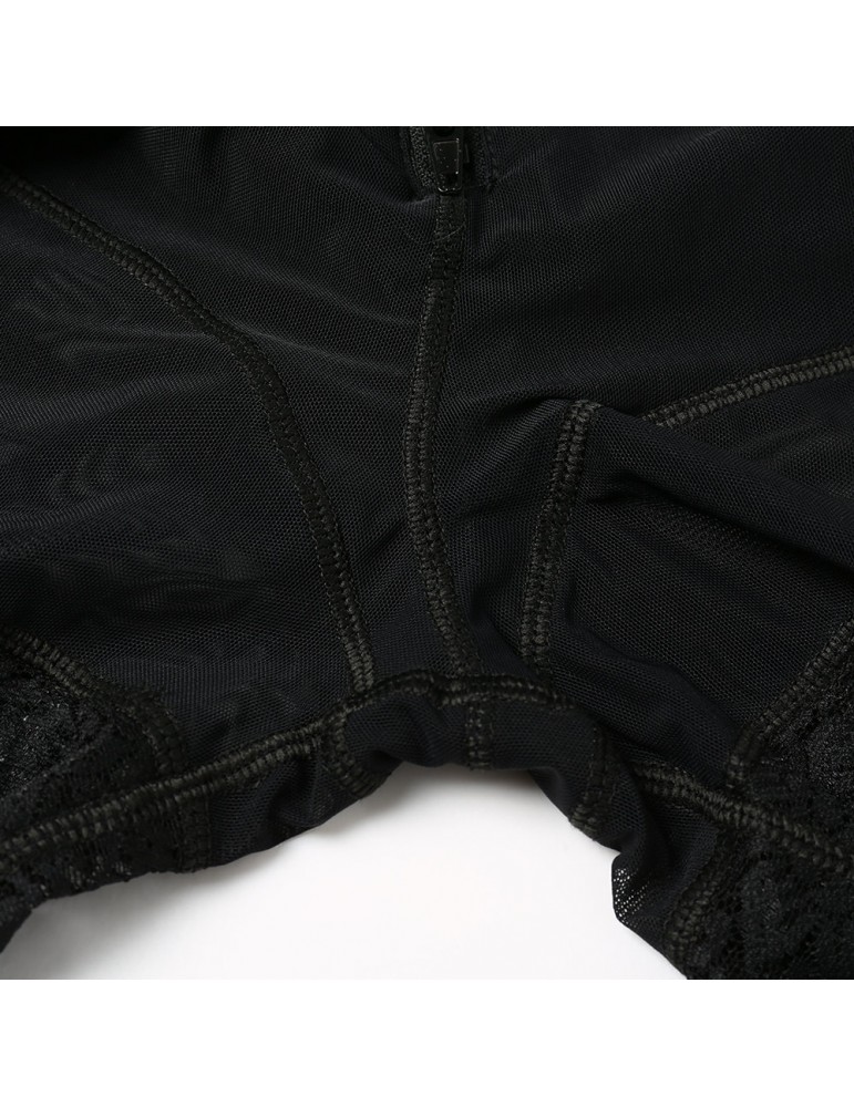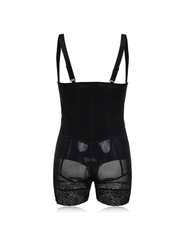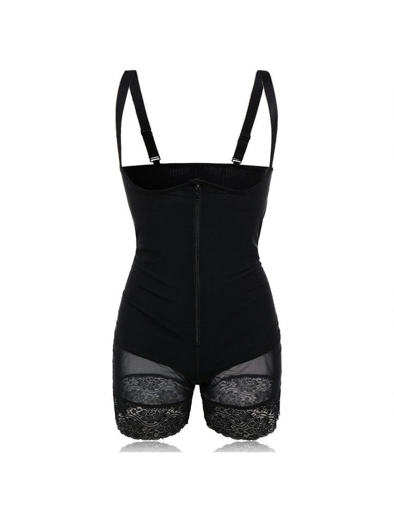 Plus Size Front Zipper Tummy Control Lace-trim Shapewear Bodysuit