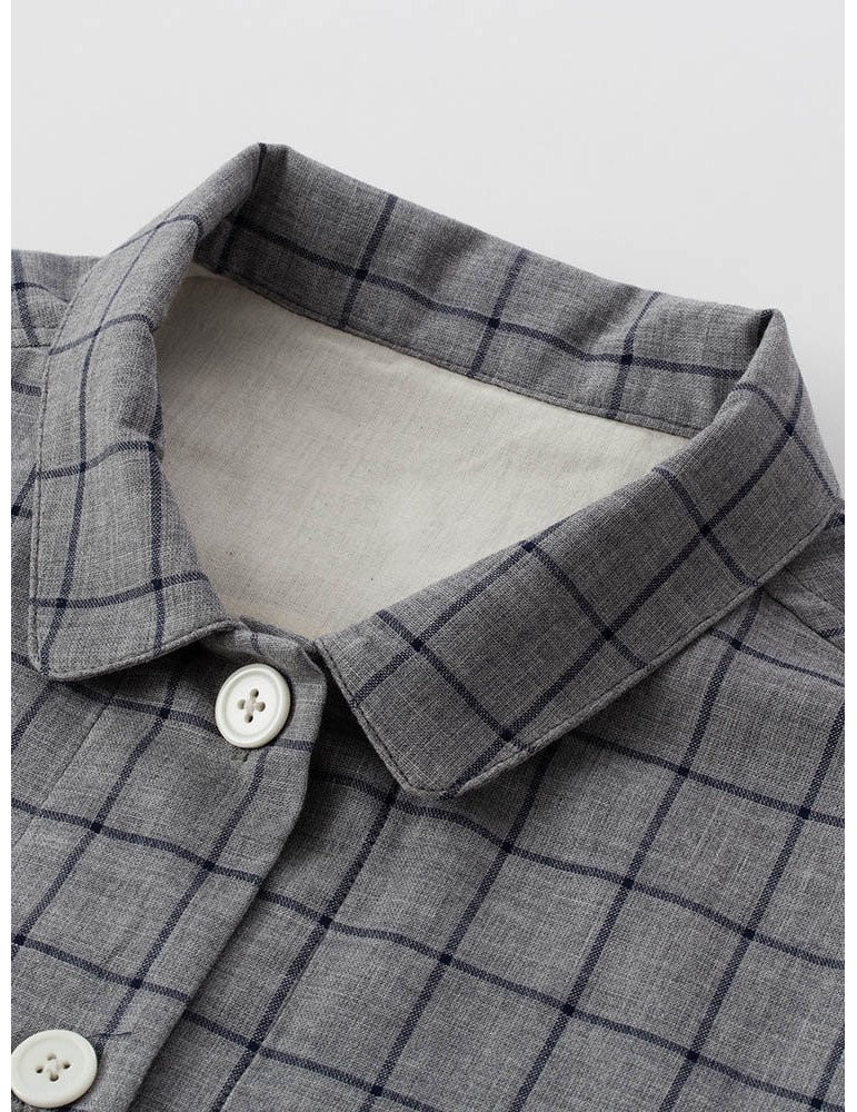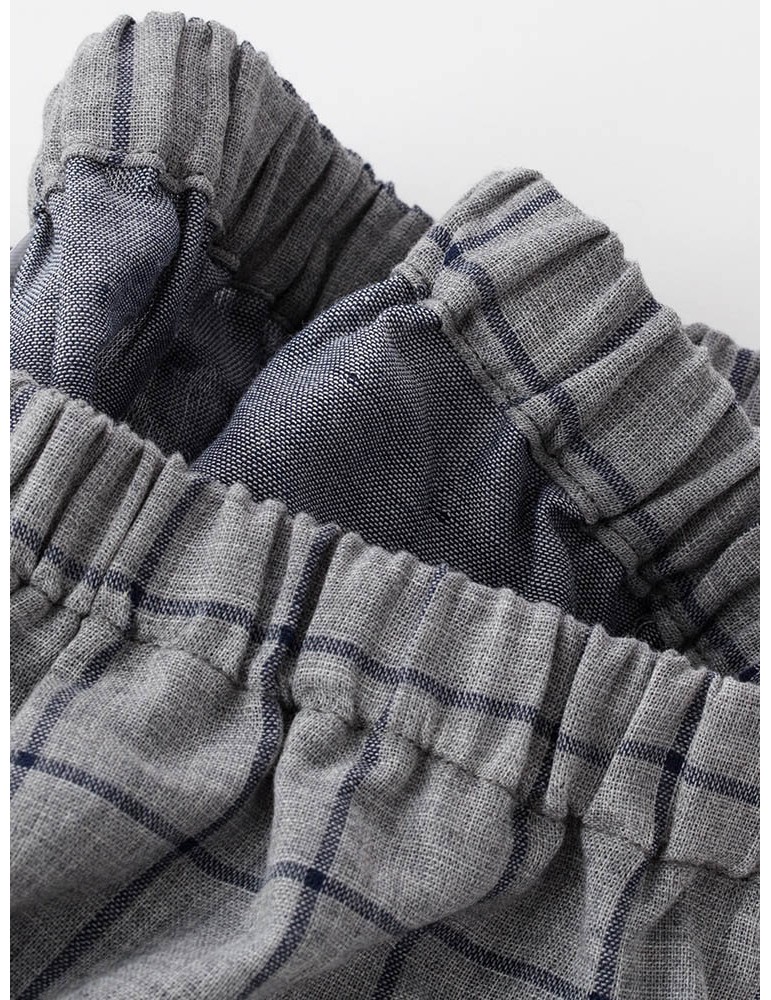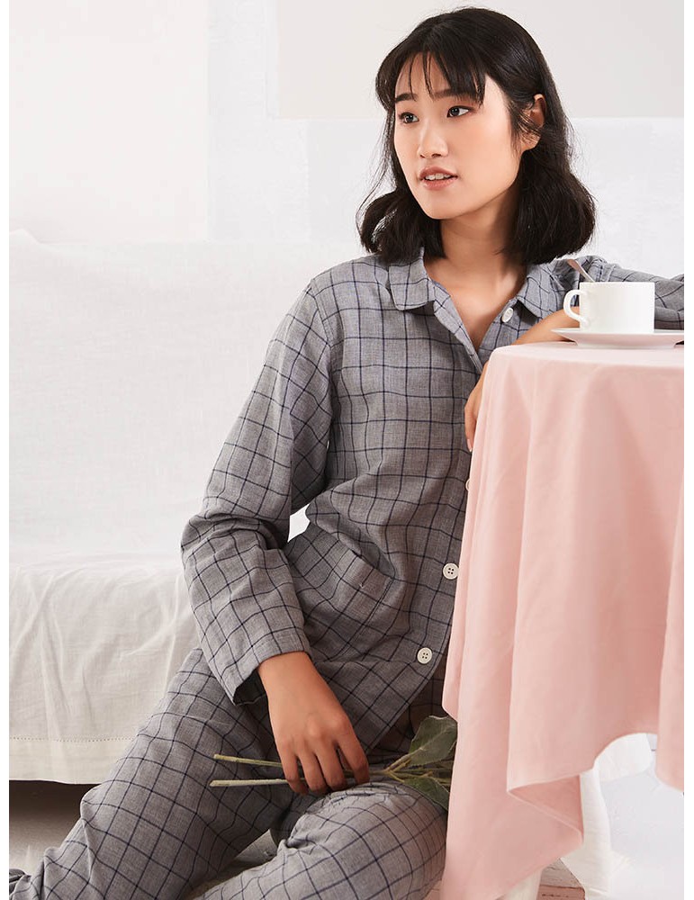 Cotton Pajamas Suits For Women Plaid Button Loose Long Sleepwear