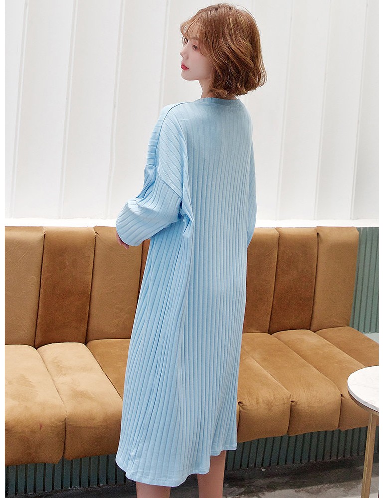 Plus Size Cotton Pajamas Cartoon Print Striped Long Sleepwear Nightdress