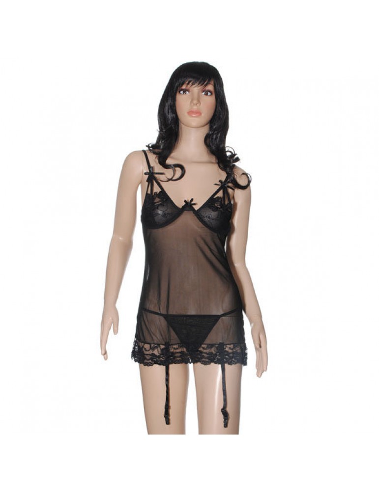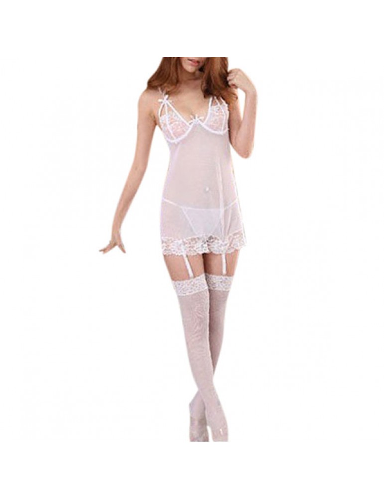 Women Sexy Transparent Mesh Bow Babydoll Exposed Breast Temptation Thongs Lingerie Sleepwear