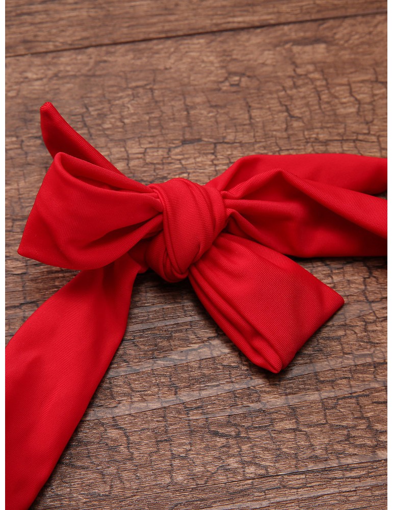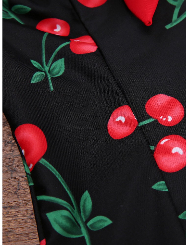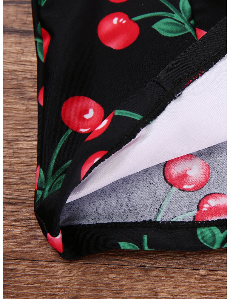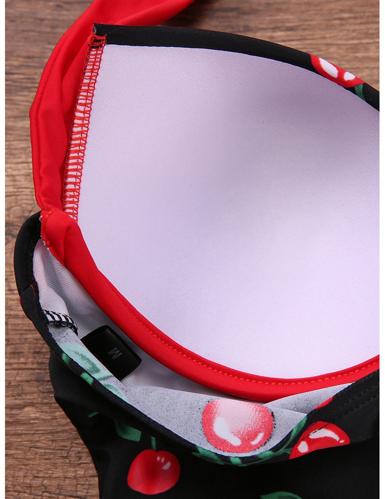 Bowknot Halter Cherry Printed Backless One-Pieces Swimwear