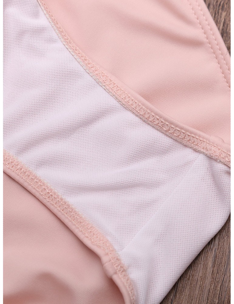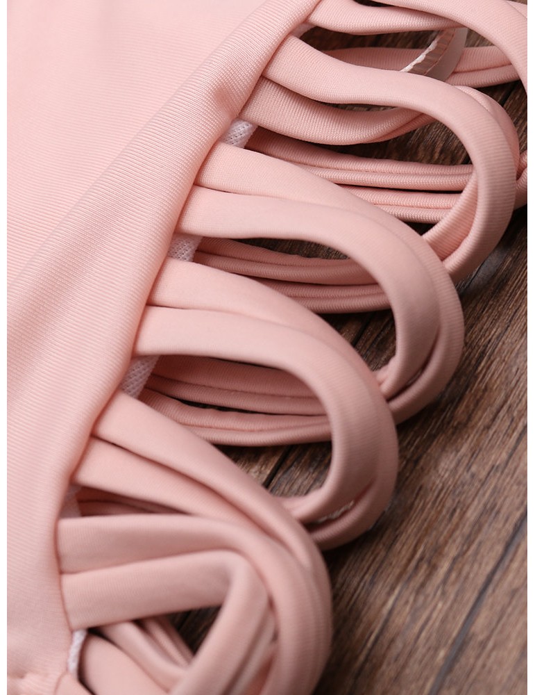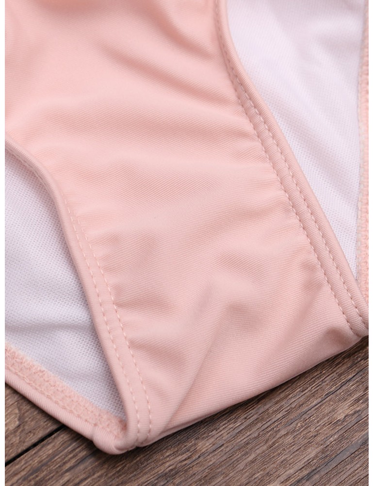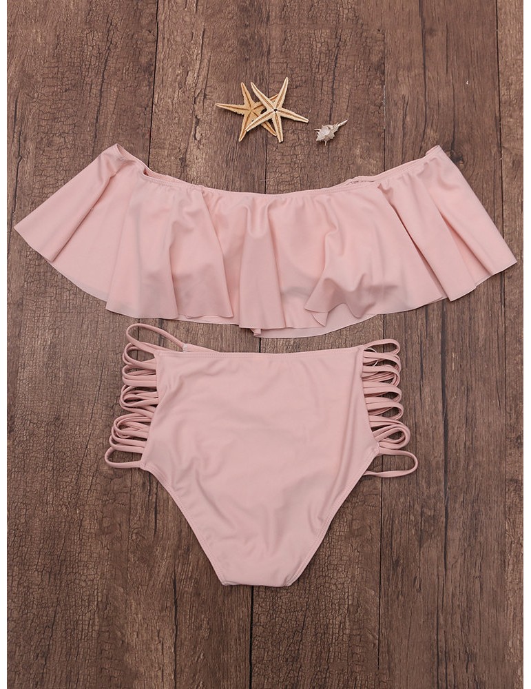 Solid Color Large Lotus Leaf Shoulder Wireless Tankini Swimwear For Women