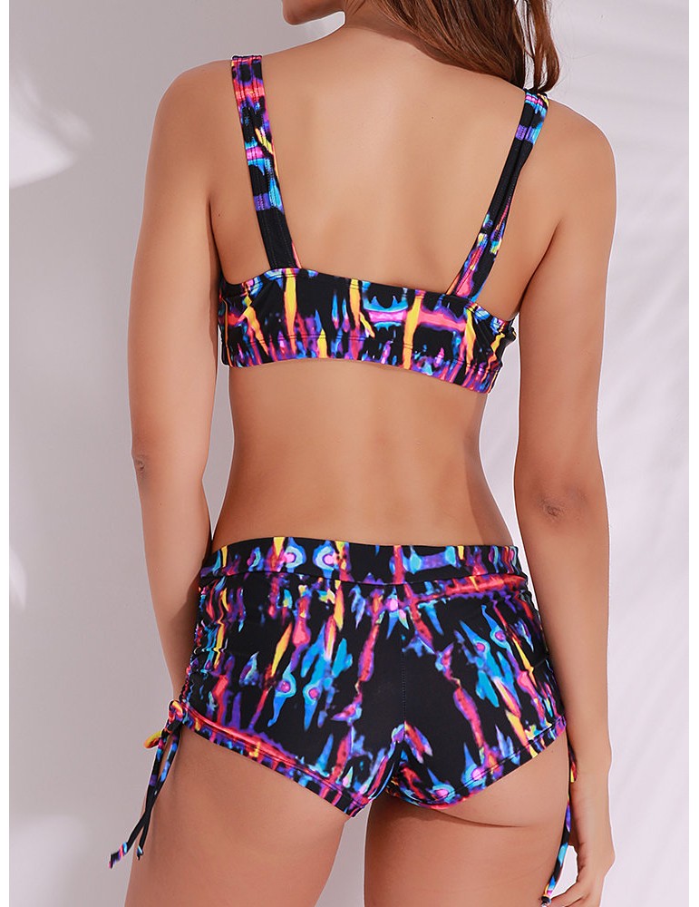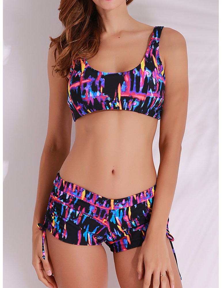 Sexy Printing High Elasticity Waist Wire Free Workout Vest Bikinis Bech Swimwear