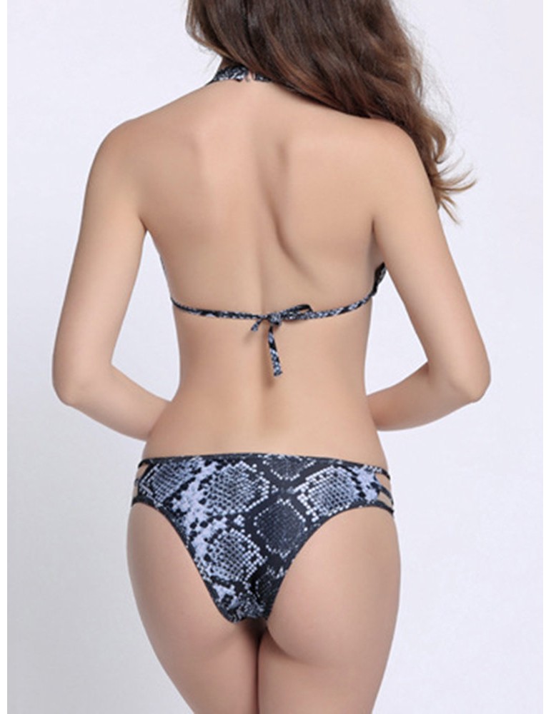 Sexy Printed Halter String Hollow Out Wireless Bikini Swimwear