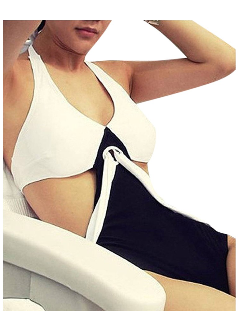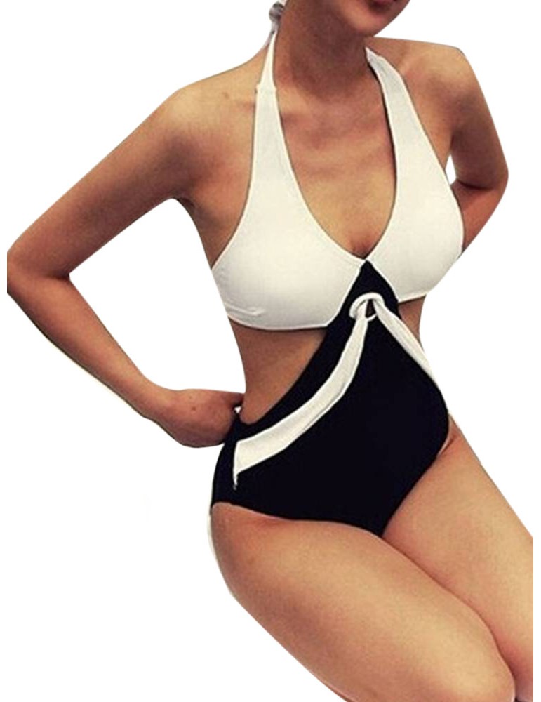 Plus Size Women Sexy Triangle One Piece Bikini Halter Elastic Hollow Swimsuit