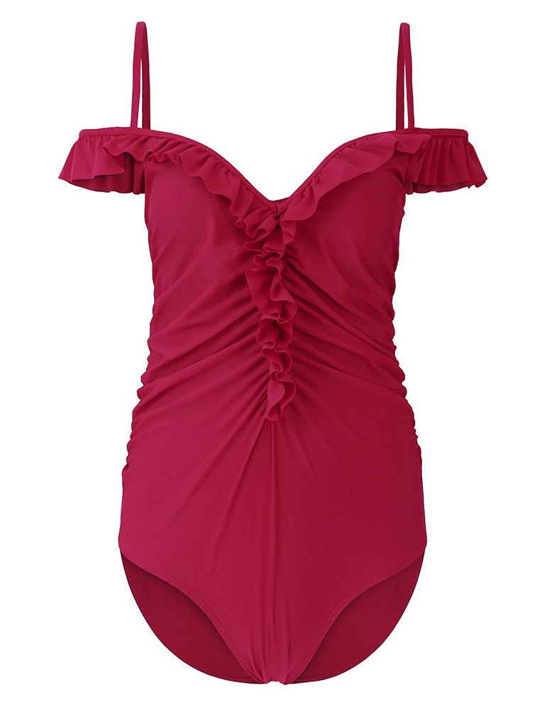 Women Sexy Off Shoulder One Piece Flounce Solid Color Swimwear